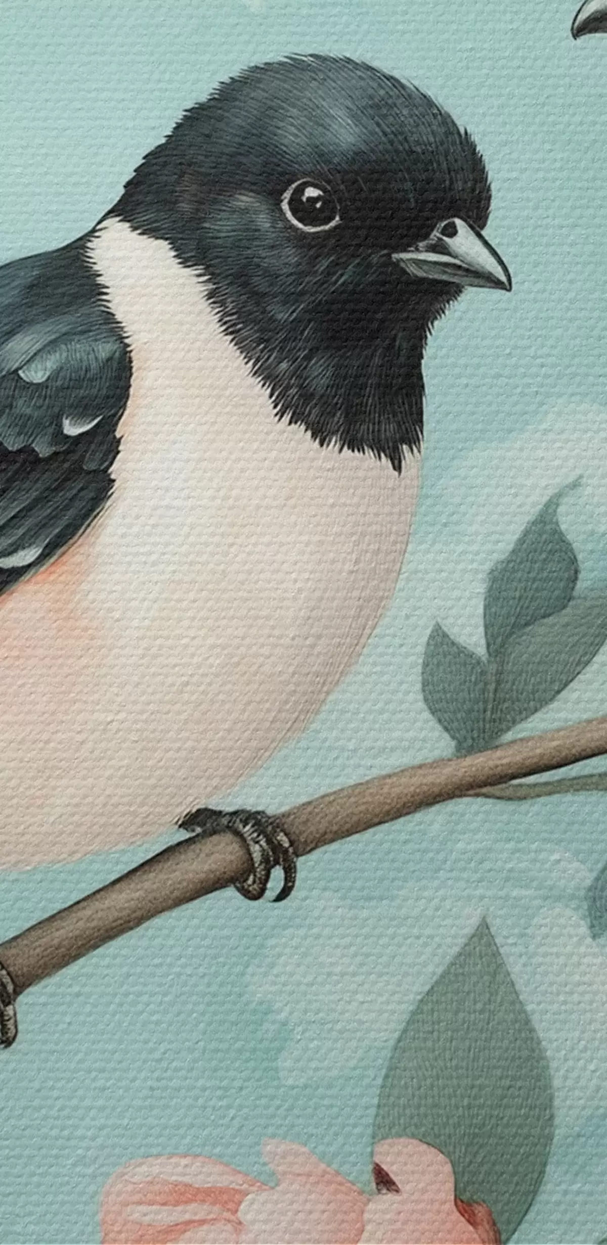 Maalid Kaks lindu oksal koos pojengiga Nr s44786