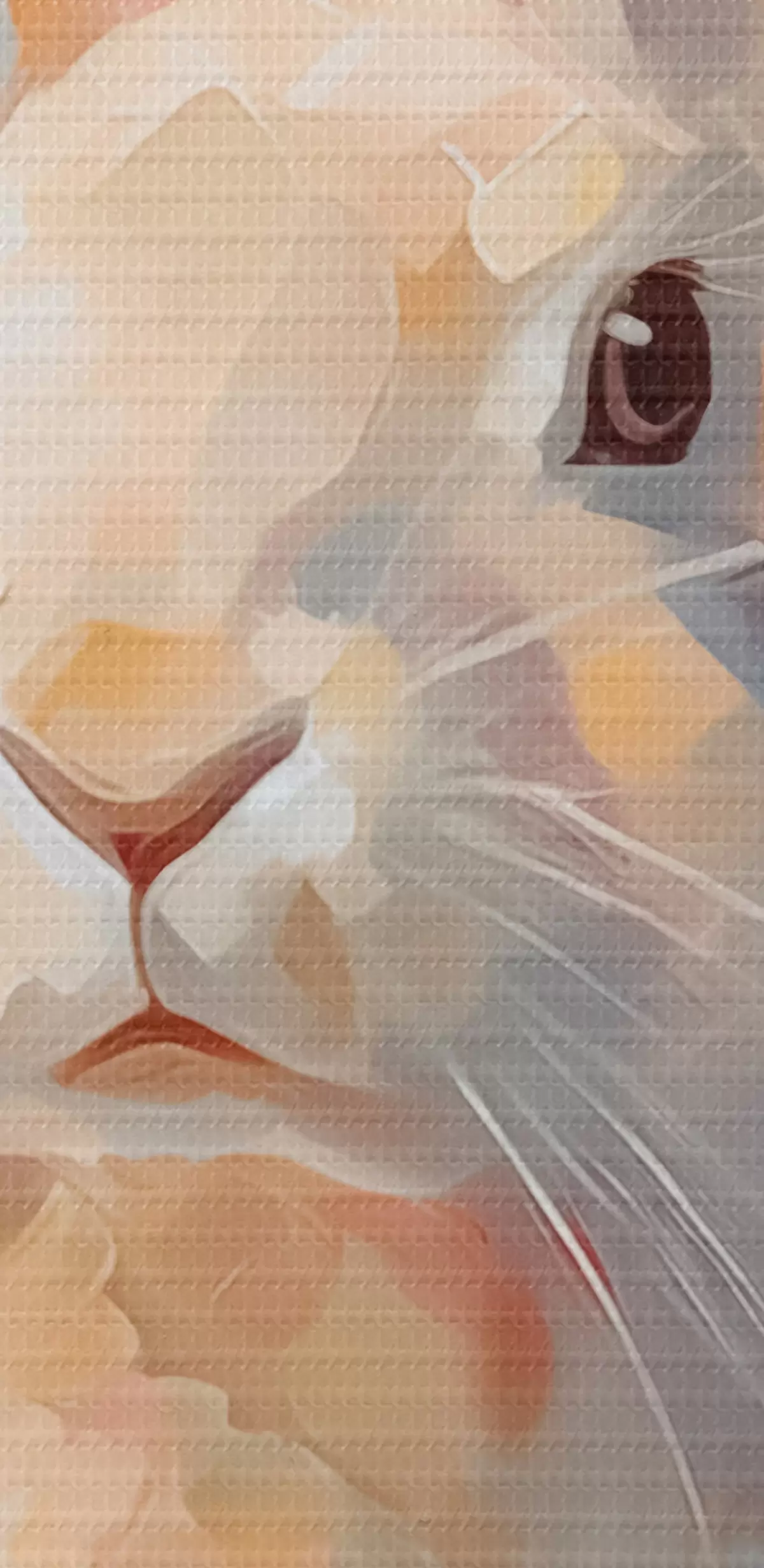 Selle lõuendi peenike niidipunus meenutab professionaalse kunstniku lõuendi pinda.