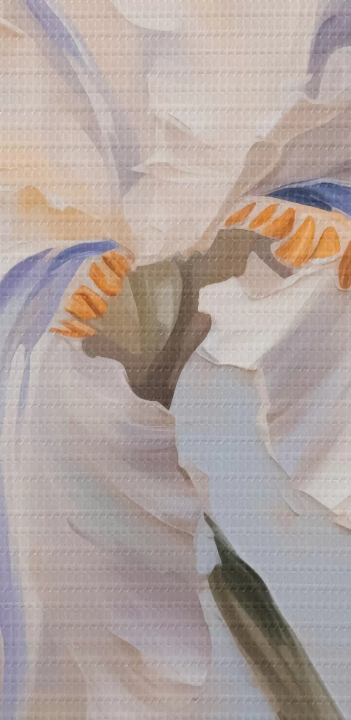 Selle lõuendi peenike niidipunus meenutab professionaalse kunstniku lõuendi pinda.