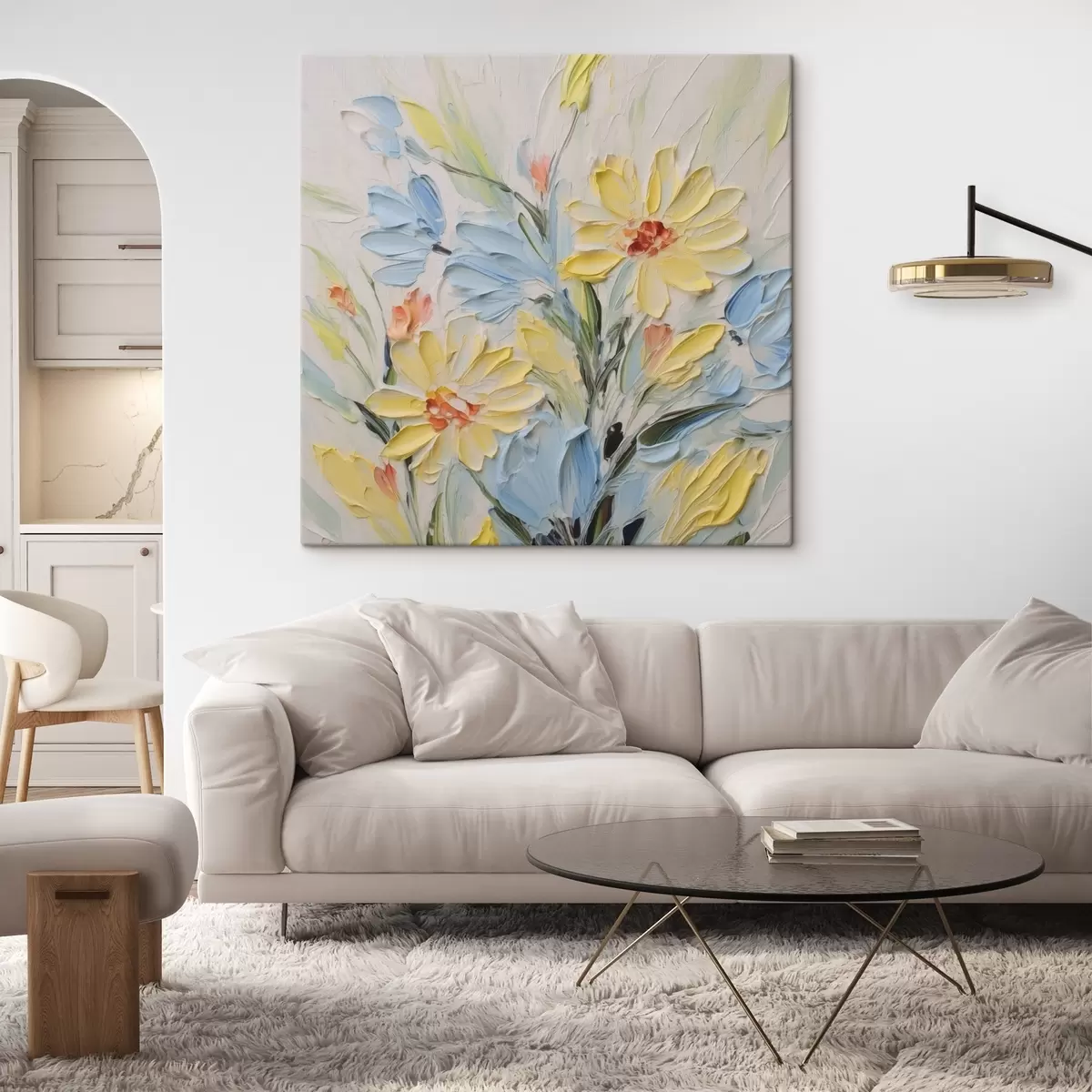 Maali võib riputada kohe pärast selle kättesaamist. Maal on pingutatud 2 cm laiusele puidust kandikule.
