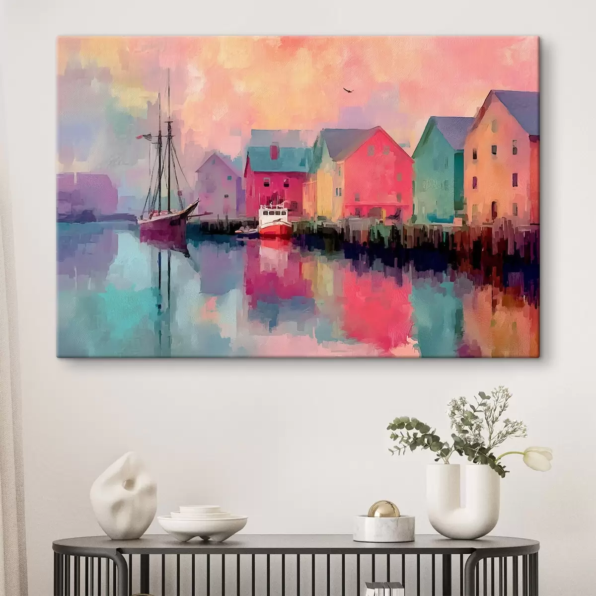 Maalid Värvilised majad vee ääres pintslitõmbega stiilis Nr s44837