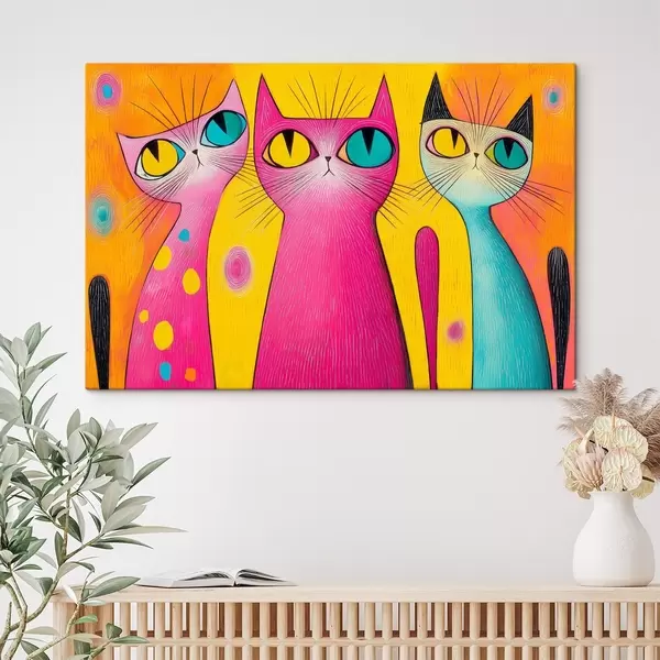 Maalid Mängulised kassid suurte silmadega kunstistiilis Nr s44845