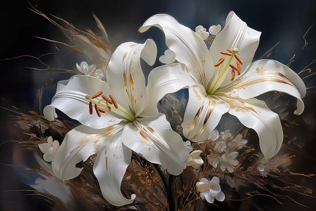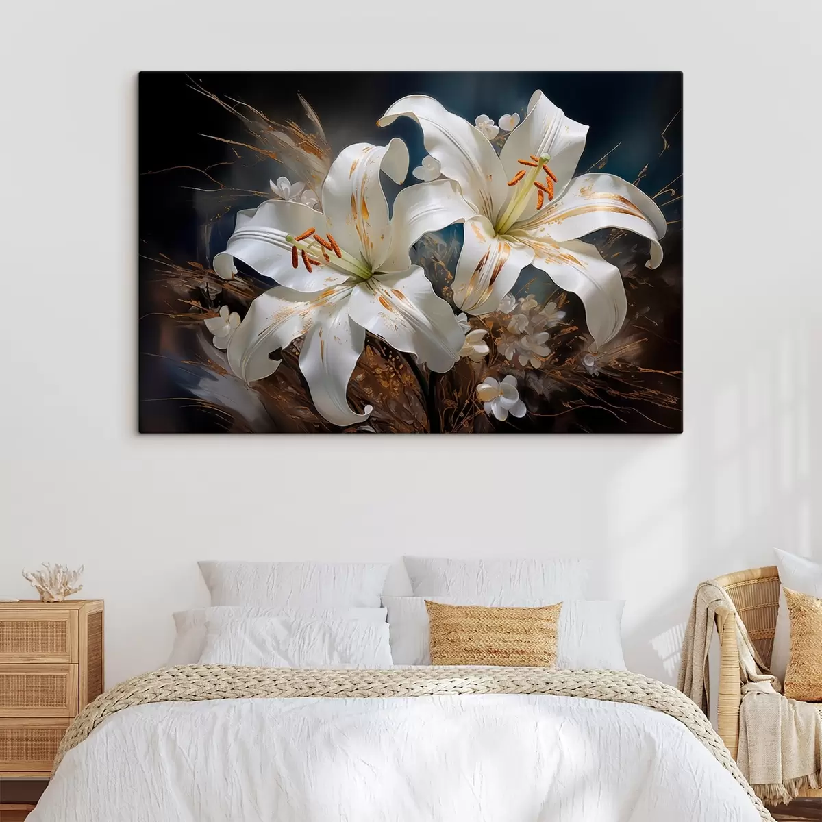 Maalid Lillelilled tumedal taustal koos dekoratiivsete elementidega Nr s44848
