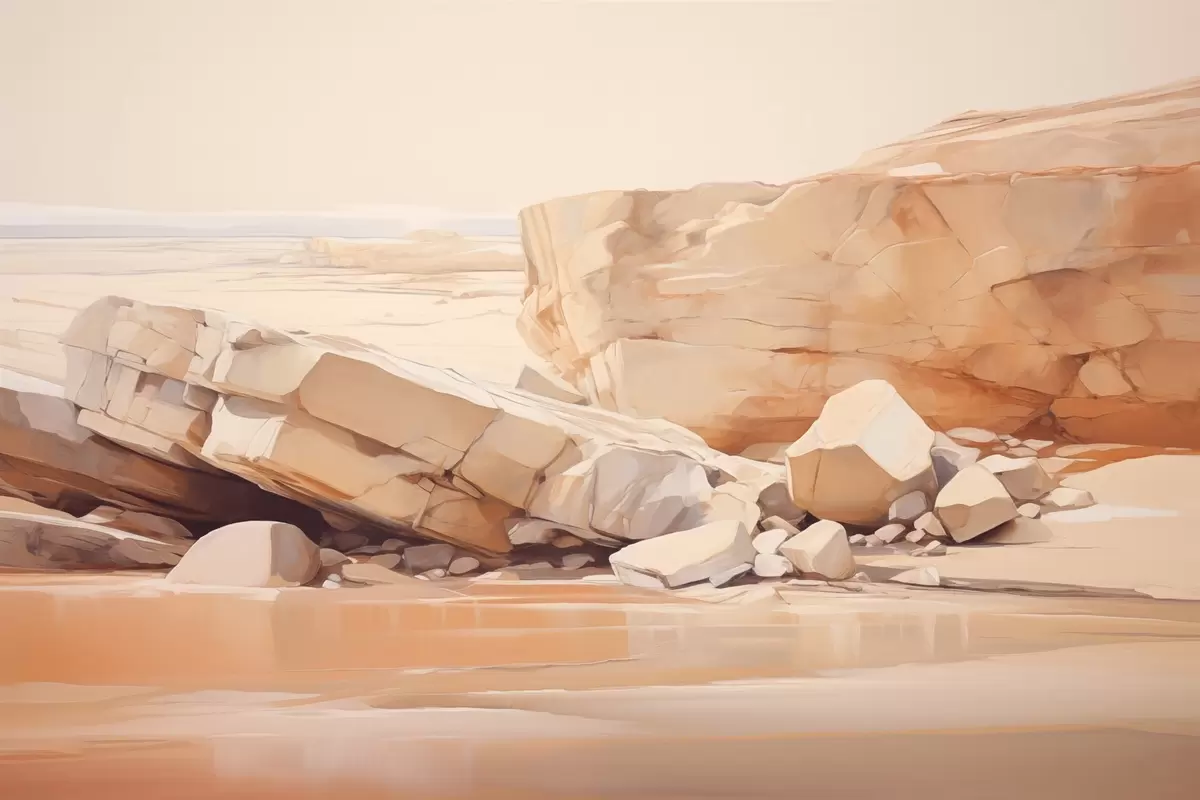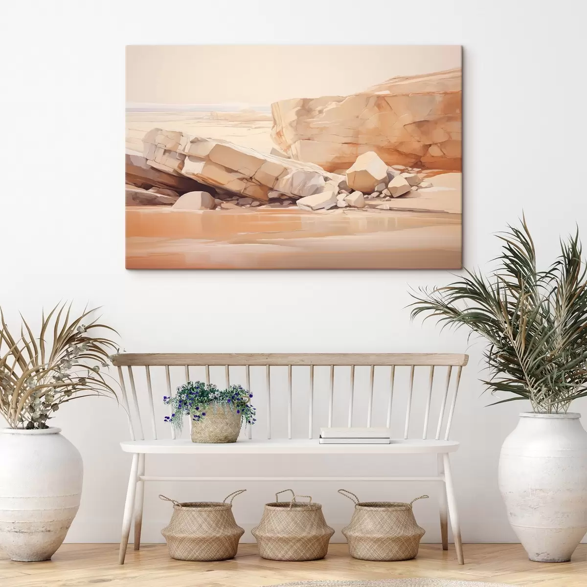 Maalid Minimalistlik kivine rannamaastik suurte helepruunide kiviklibude ja selge veega Nr s44865