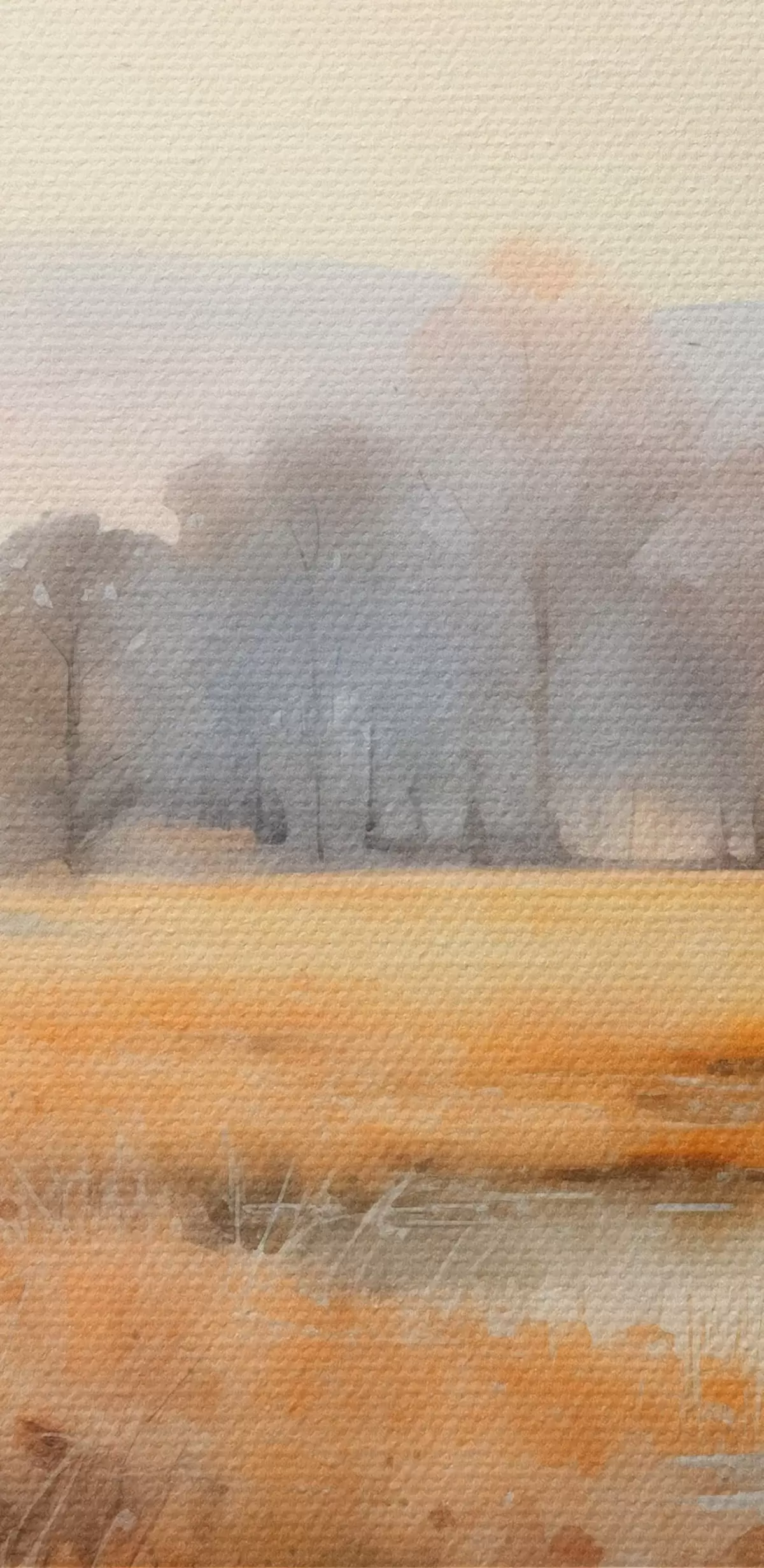 Maalid Rahulik tekstuuriga maastikumaali imitatsioon pilliroost ja paljaste puude, rahuliku vee all taevas Nr s44867