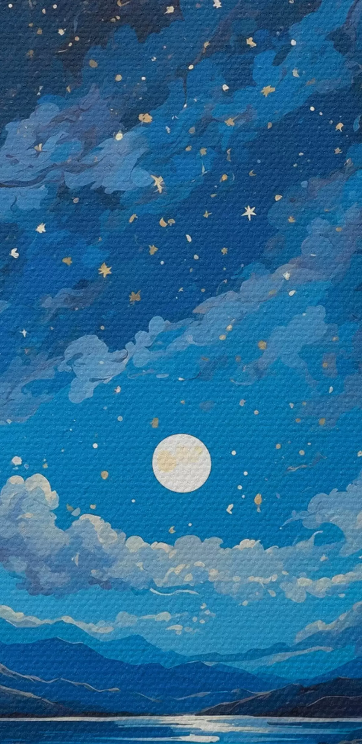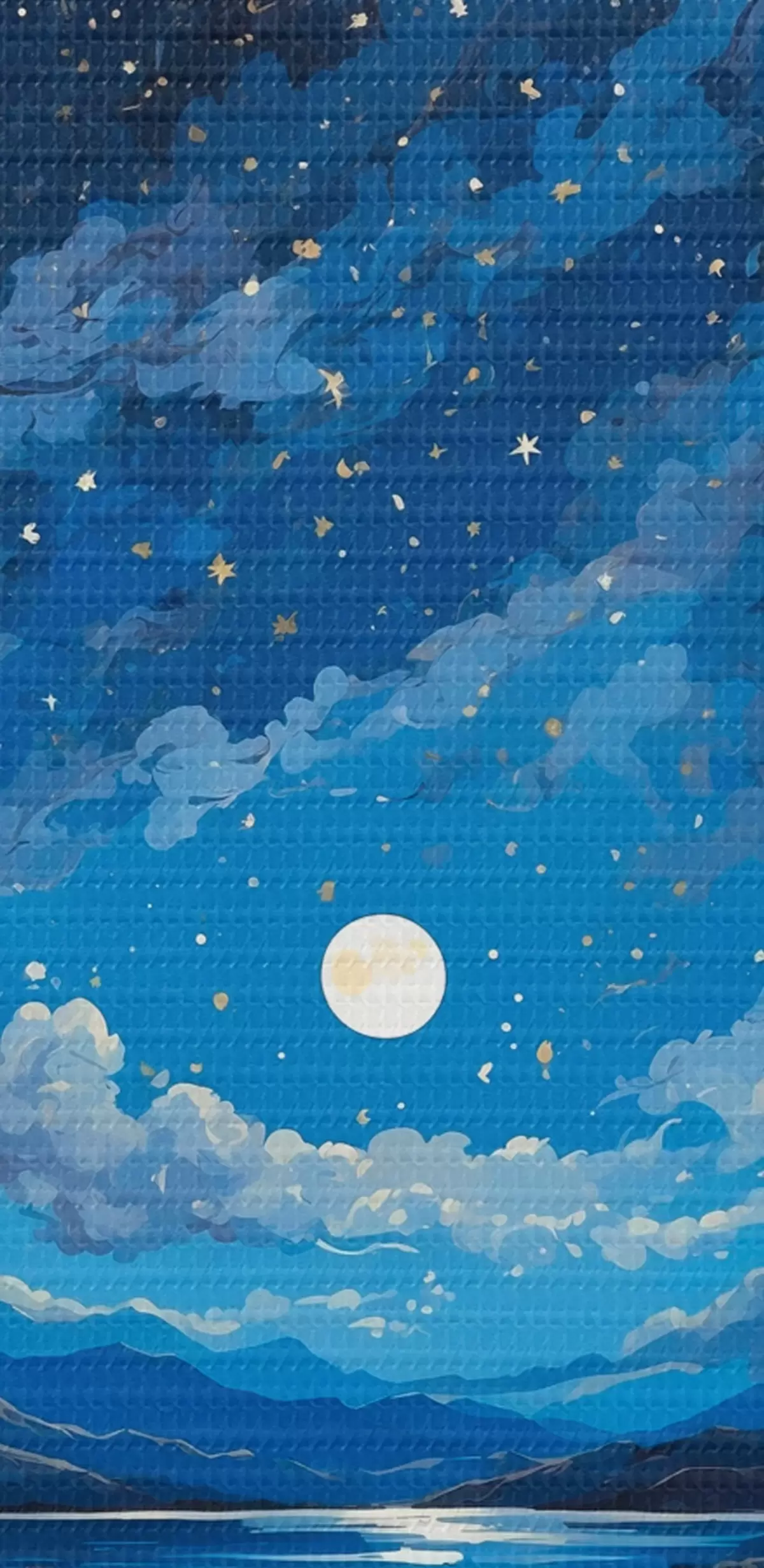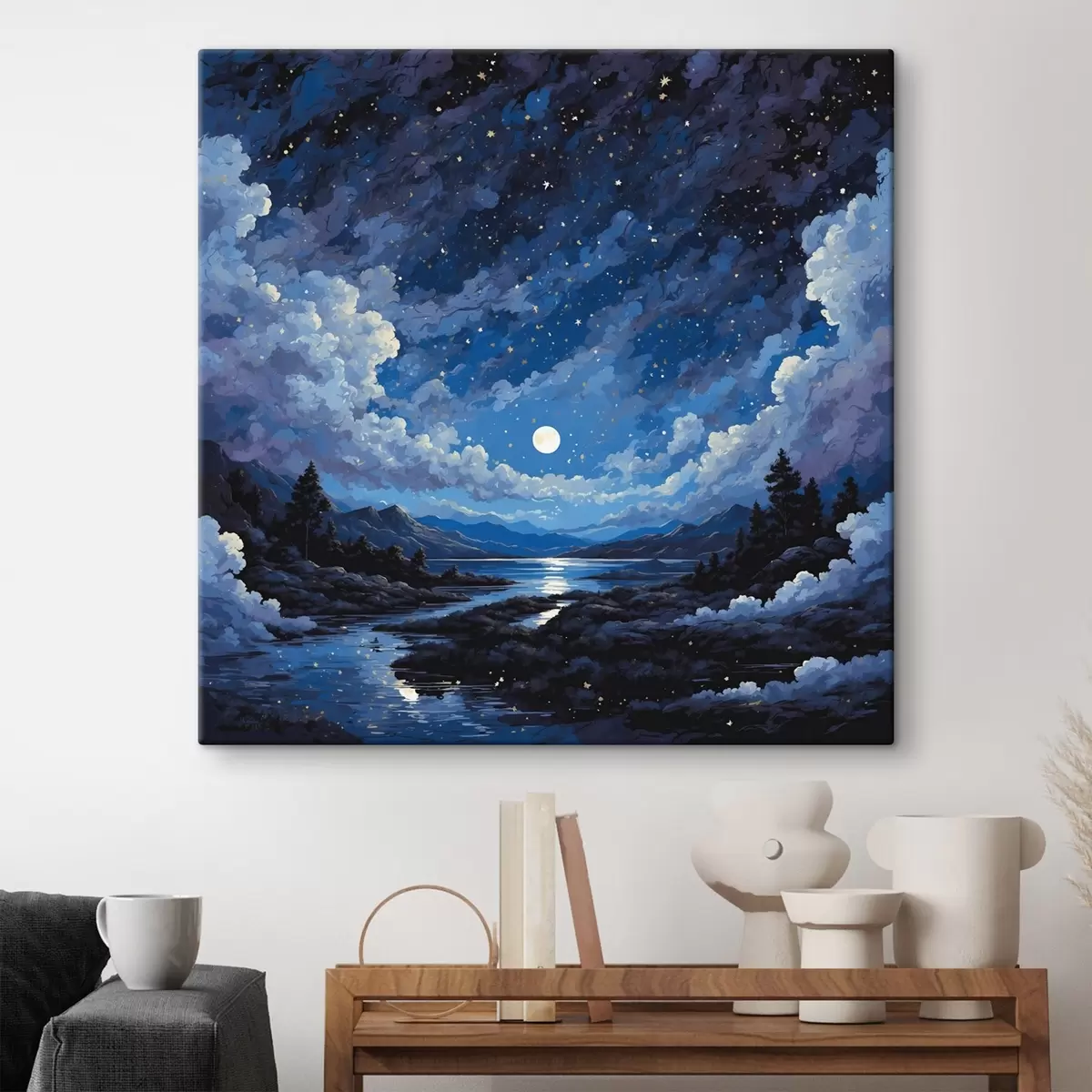 Maalid Öötaevas kuu ja tähtedega mägimaastiku kohal Nr s44872