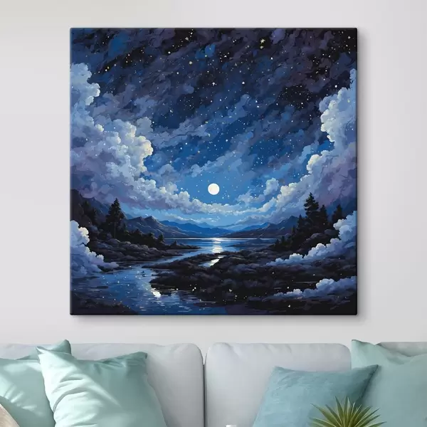 Maalid Öötaevas kuu ja tähtedega mägimaastiku kohal Nr s44872