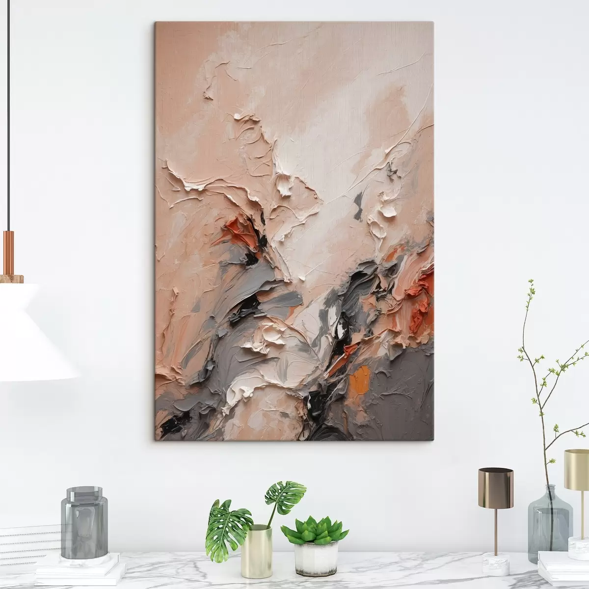 Maalid Abstraktsed virsikahallides toonides tekstuursete joonistustega Nr s44873