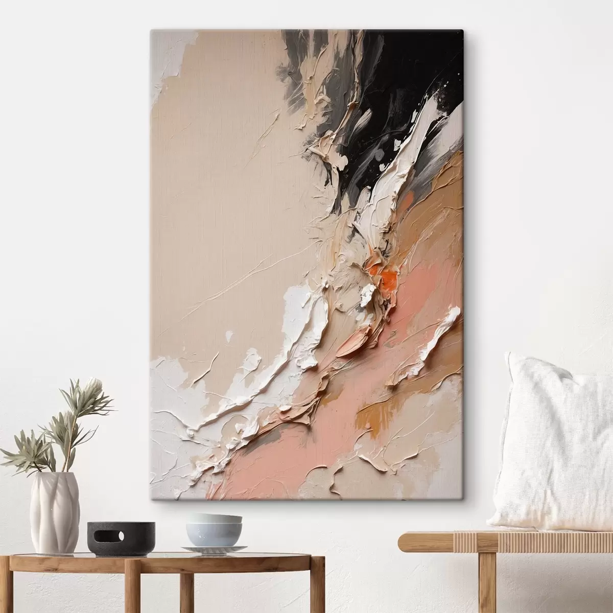 Maalid Beež ja must abstraktsioon roosa ja valge aktsentidega Nr s44875