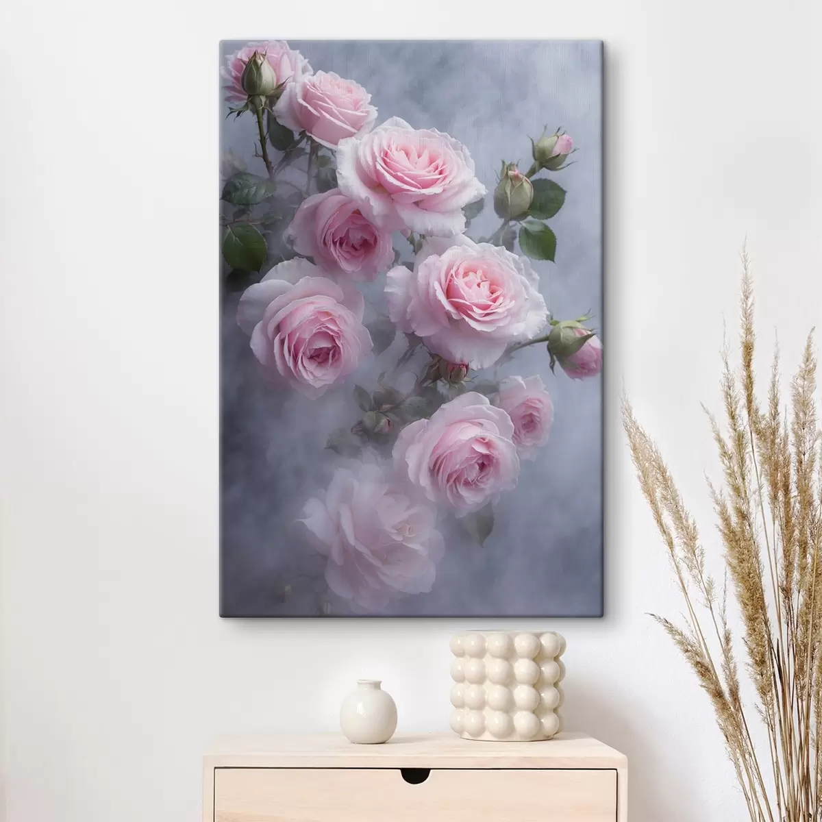 Maalid Pehmelt roosad roosid roheliste lehtedega udus Nr s44892