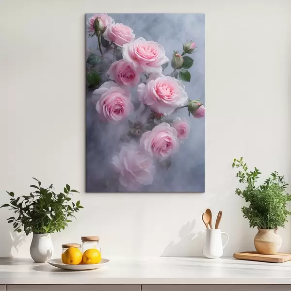 Maalid Pehmelt roosad roosid roheliste lehtedega udus Nr s44892
