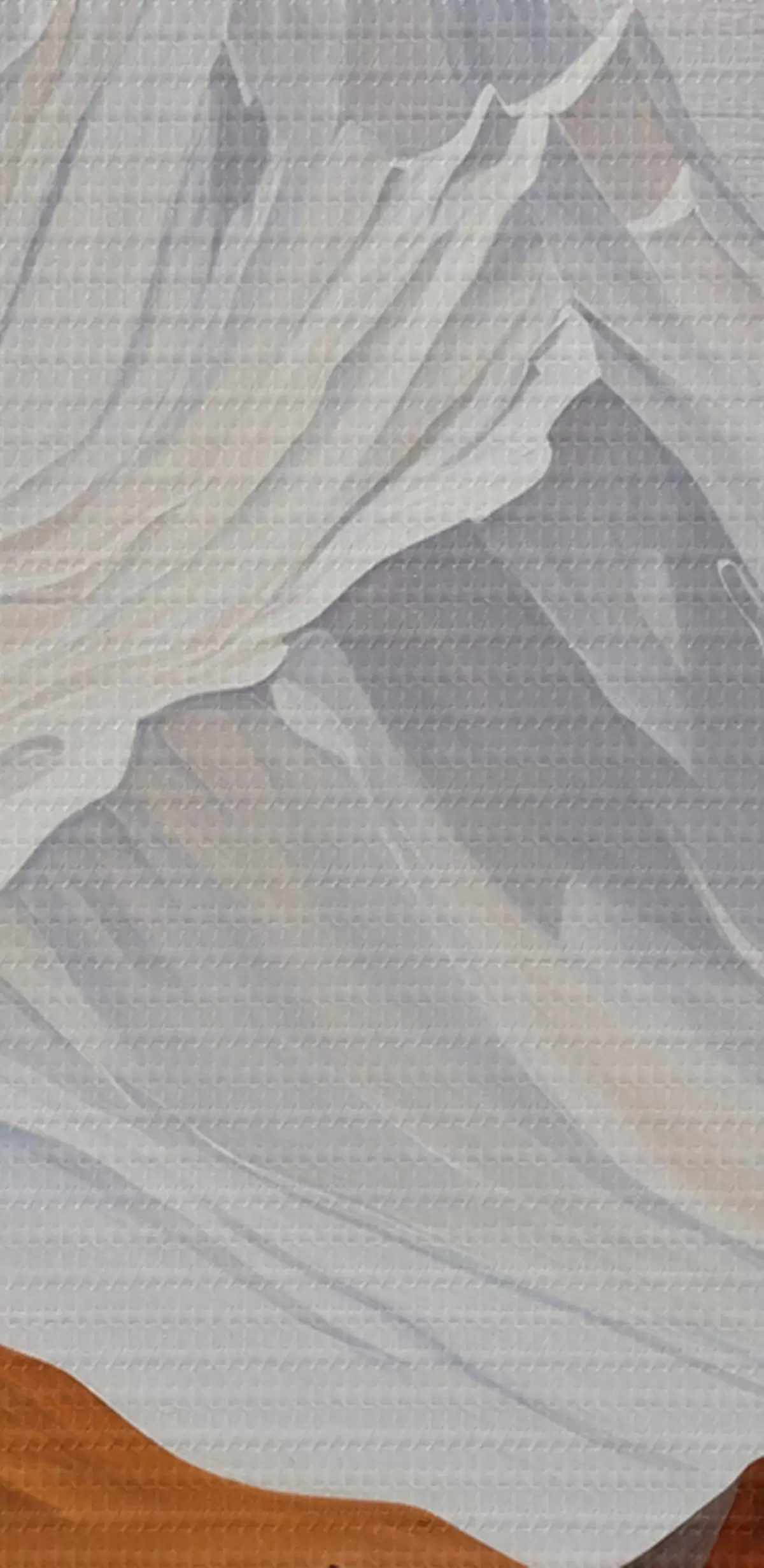 Selle lõuendi peenike niidipunus meenutab professionaalse kunstniku lõuendi pinda.