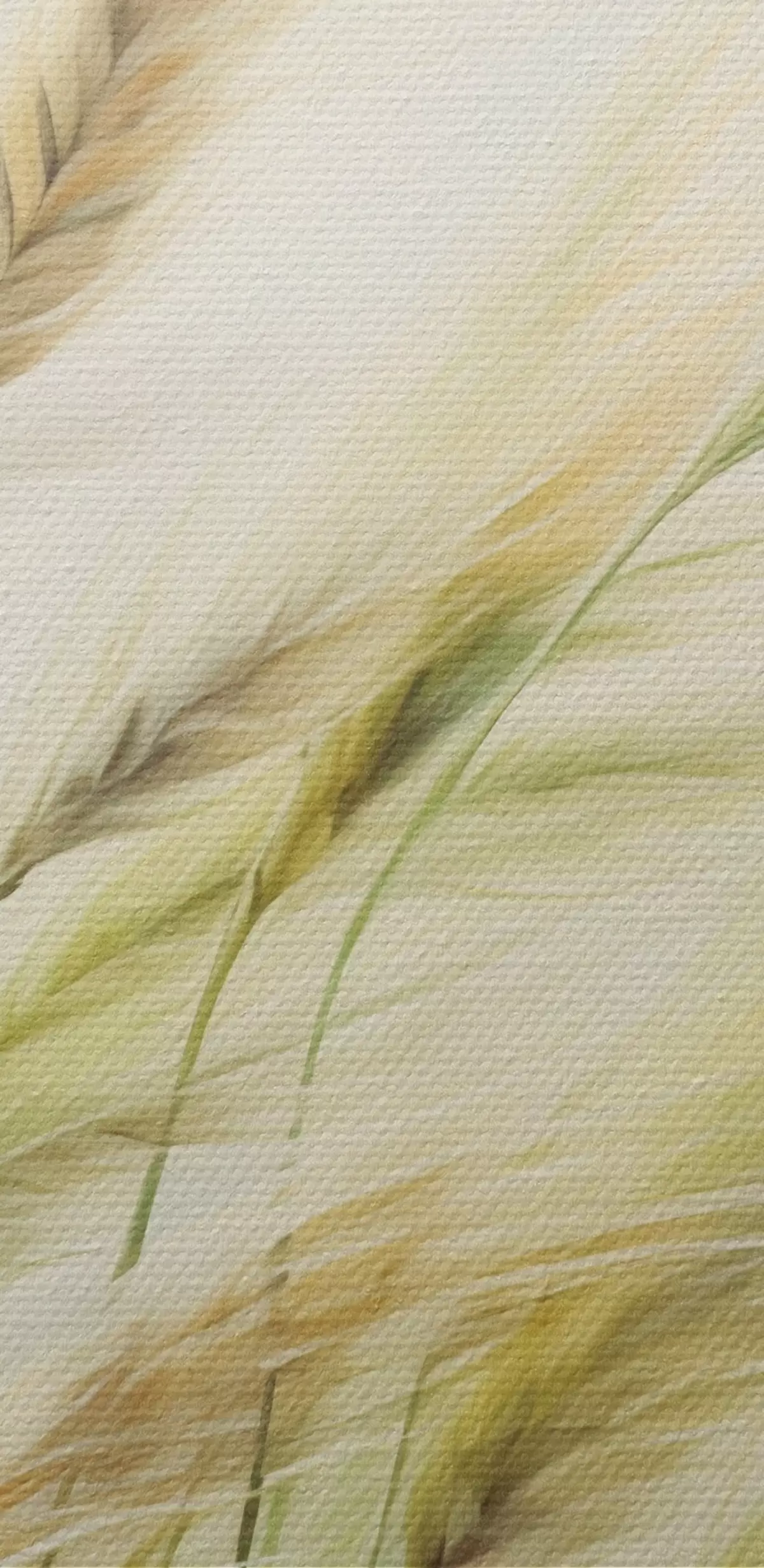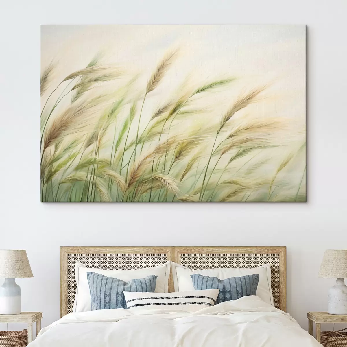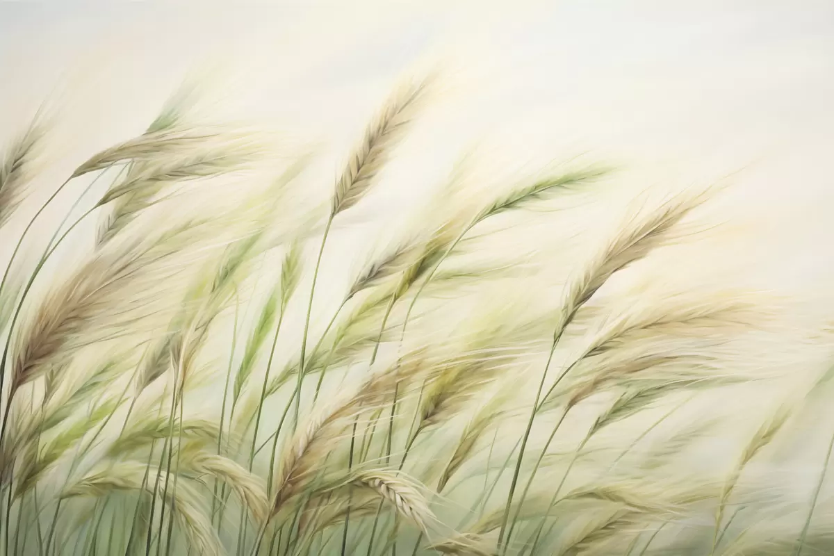 Maalid Nisupõld kollaste ja roheliste viljateradega, pehmed pintslitõmbed ja kerge värvipalett, loomulik atmosfäär Nr s44923