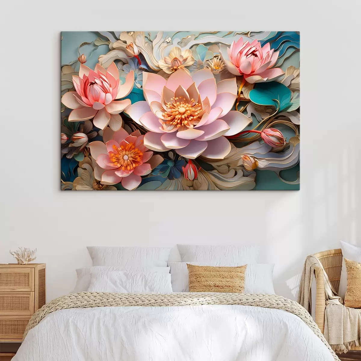 Maalid Roosa-oranžid lootosid 3D joonistamise stiilis Nr s44934