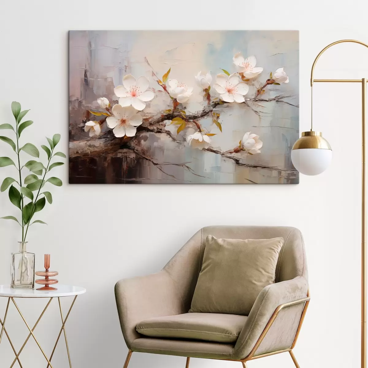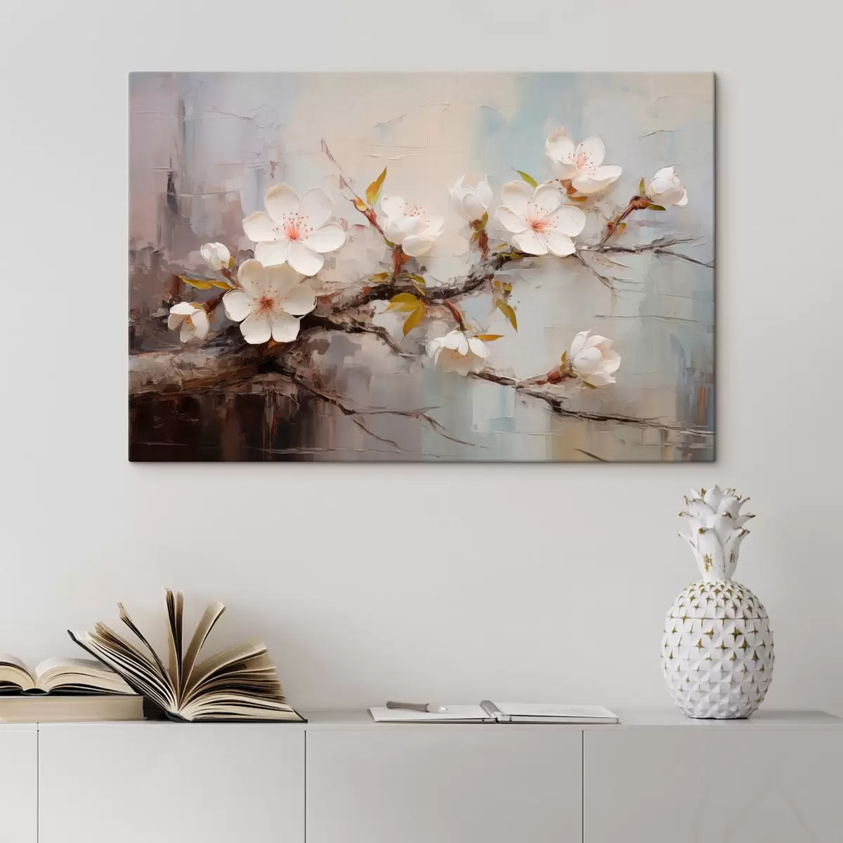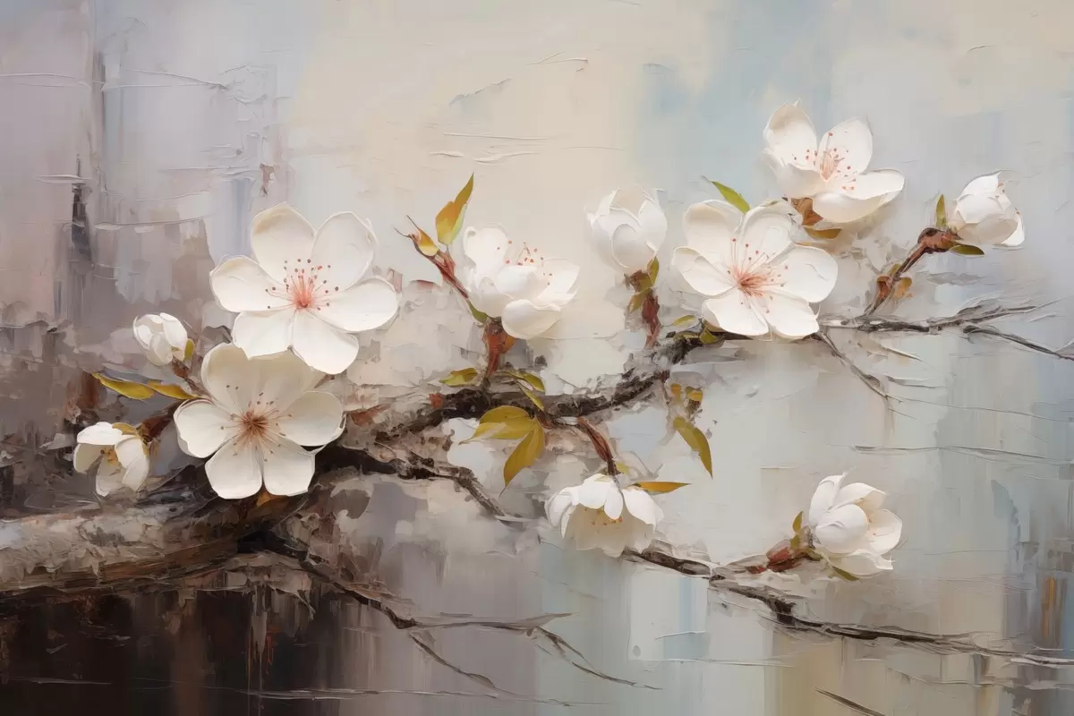 Maalid Valged lilled roosade aktsentidega abstraktsel taustal Nr s44935