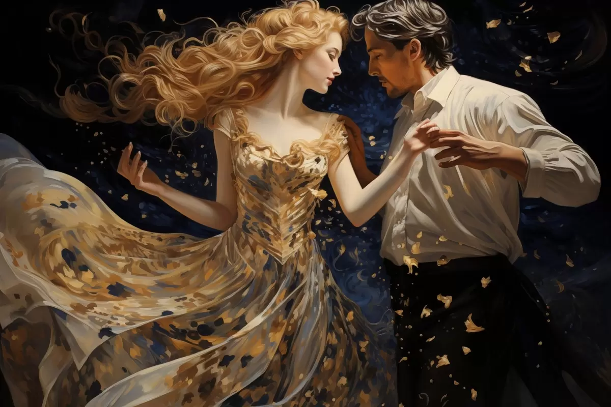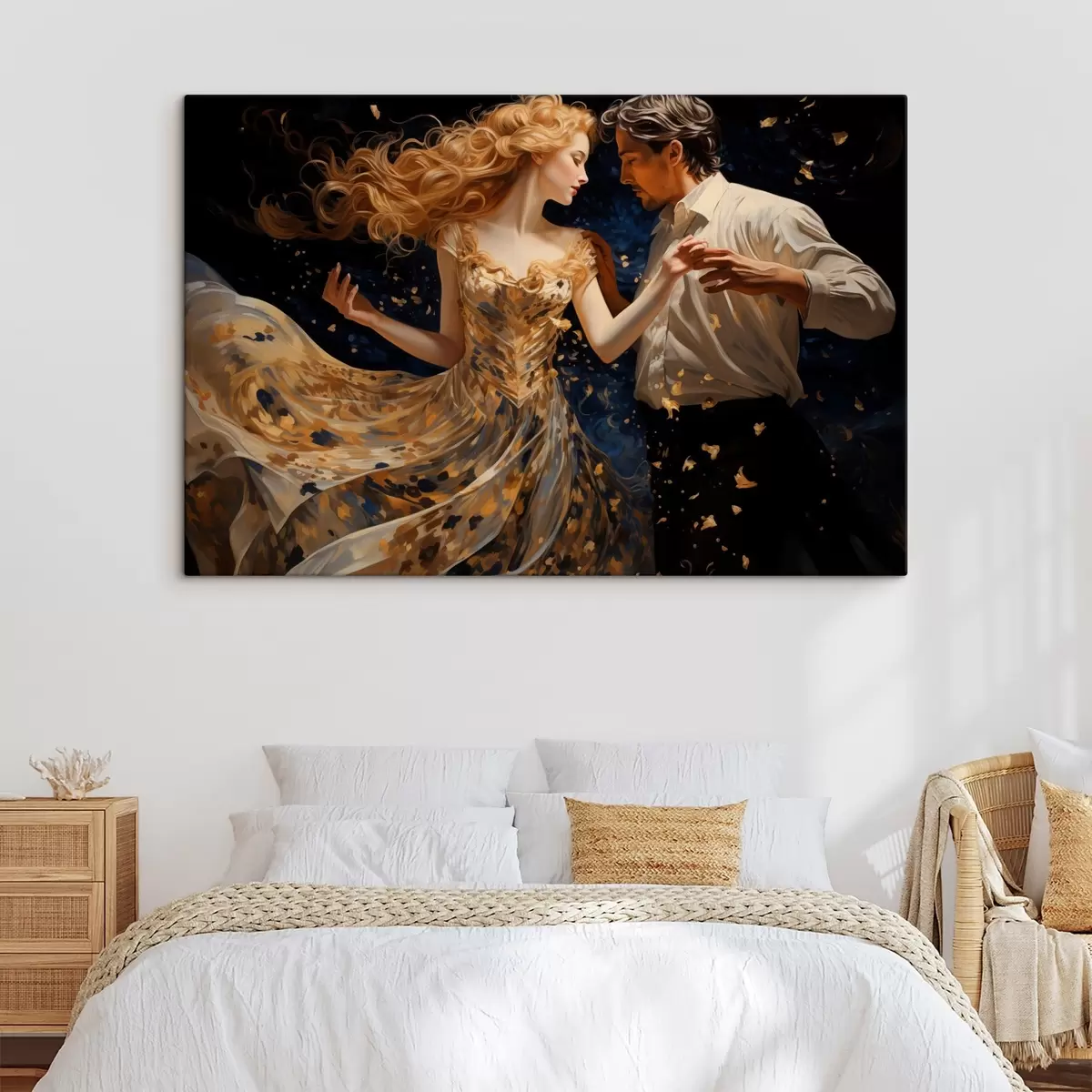 Maalid Paar liikumises kollase-sinistes toonides maalimisstiilis Nr s44940