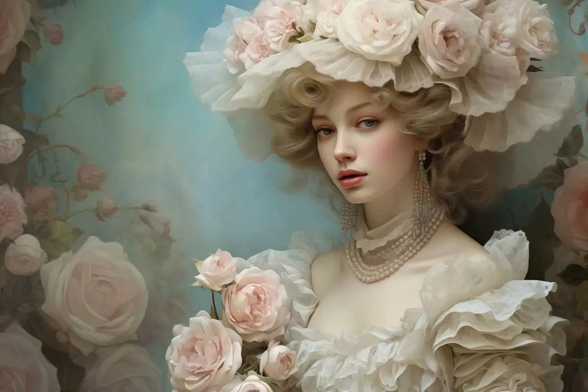 Maalid Elegantne daam lilledega mütsiga kunstilises stiilis Nr s44944