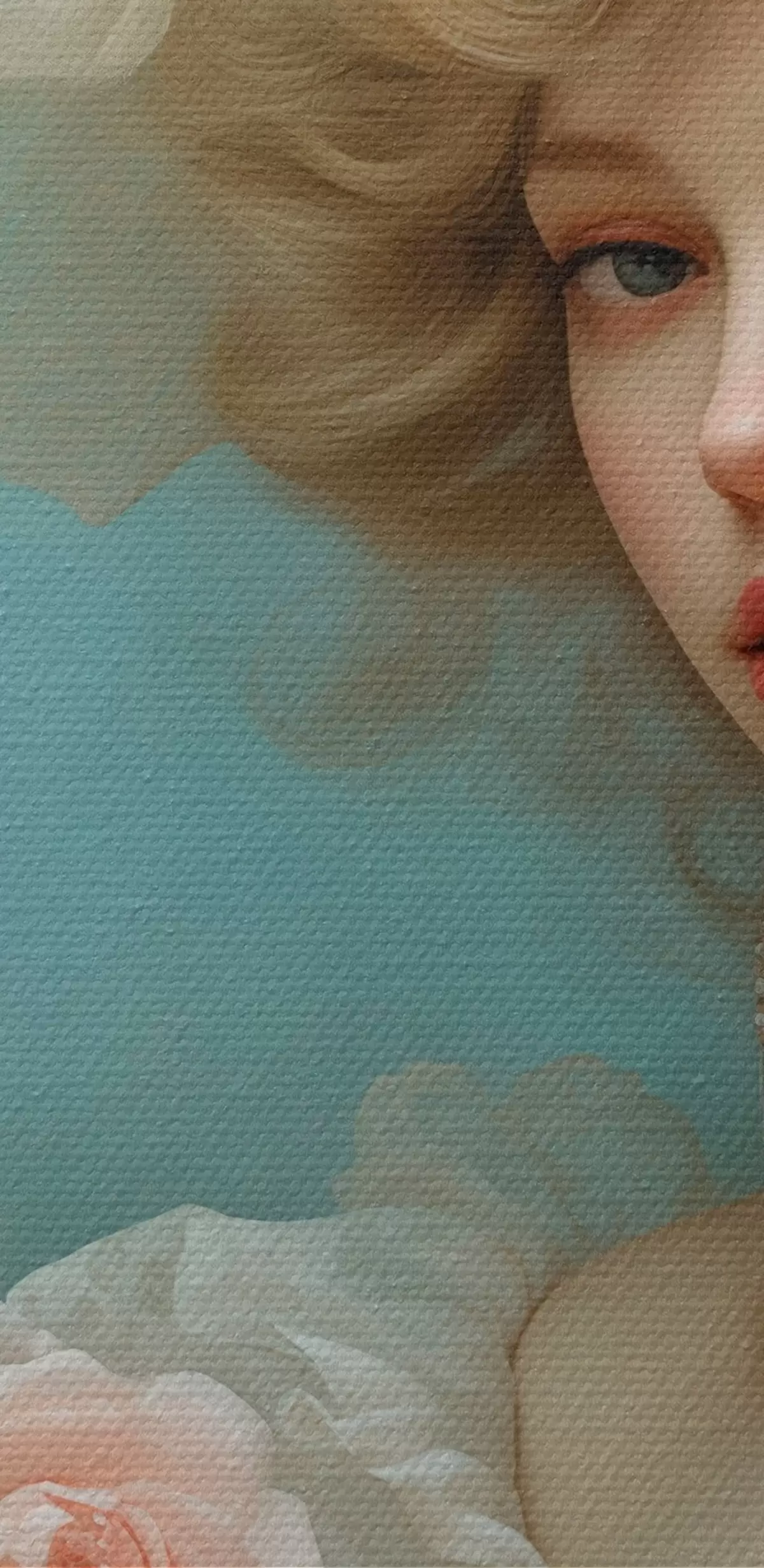 Selle lõuendi peenike niidipunus meenutab professionaalse kunstniku lõuendi pinda.