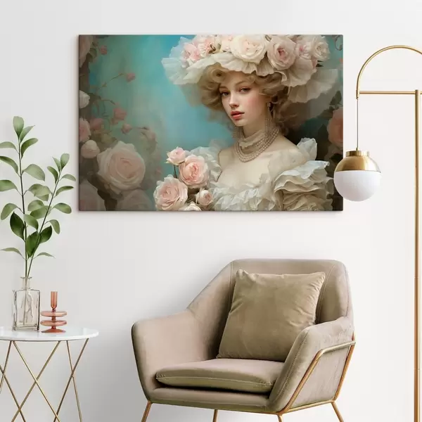 Maalid Elegantne daam lilledega mütsiga kunstilises stiilis Nr s44944