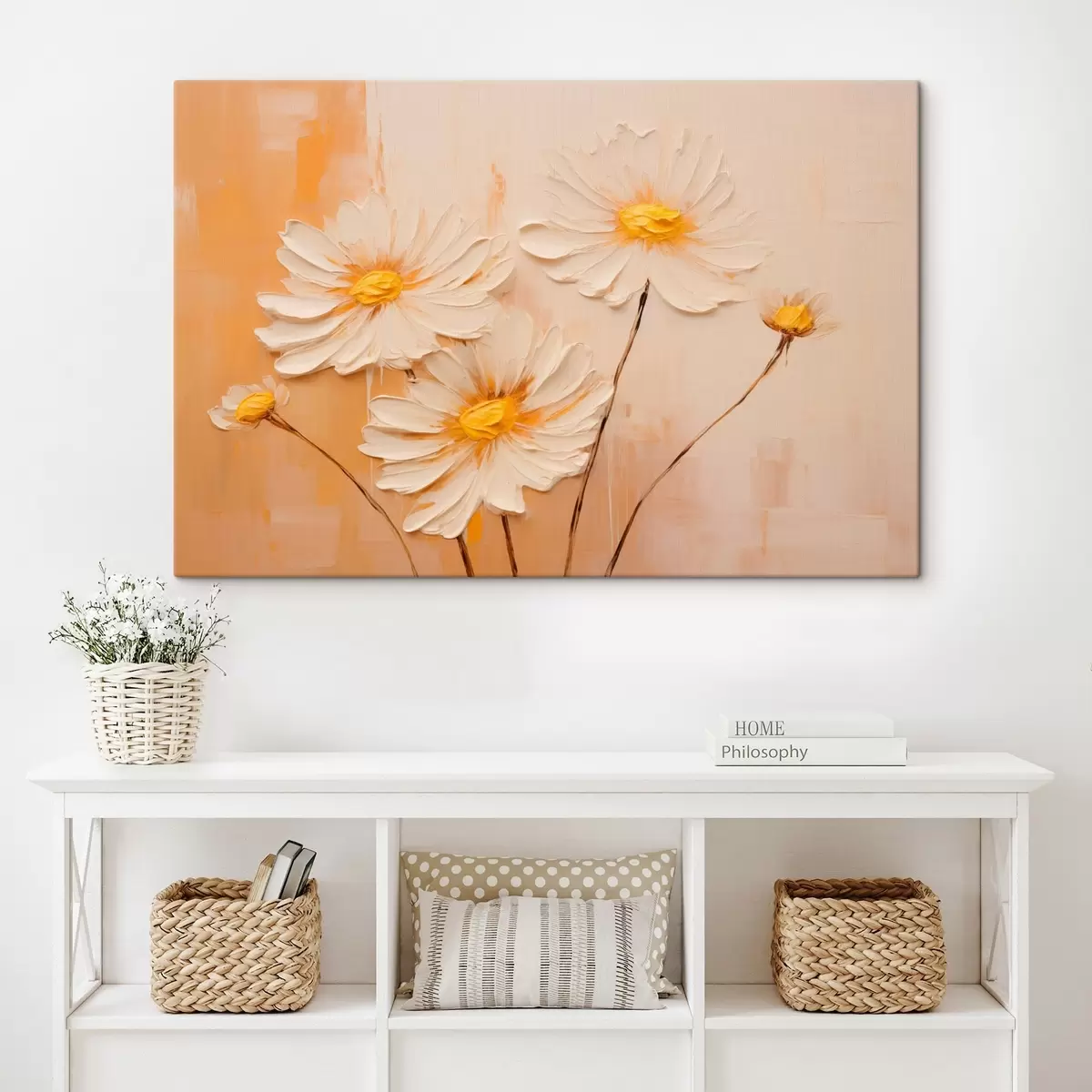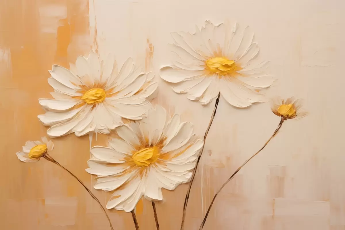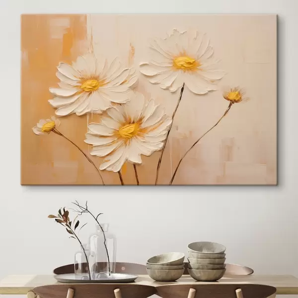 Maalid Abstraktsed lilled oranžil taustal õlimaalide stiilis Nr s44945