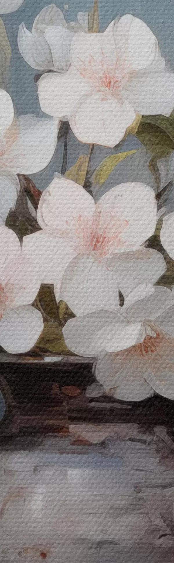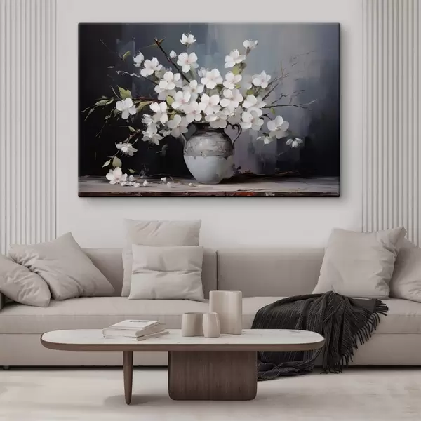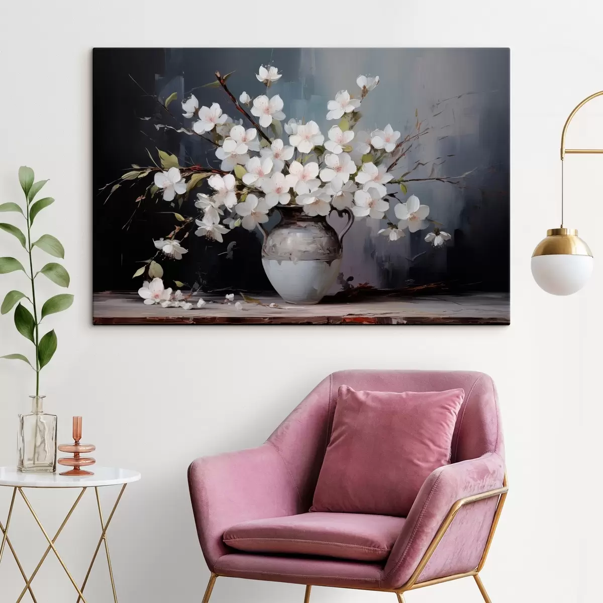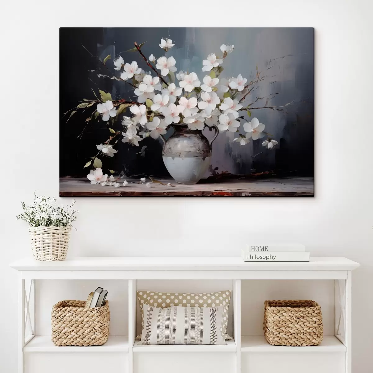 Maalid Õitsvad oksad vaasis tumedal taustal maalilises stiilis Nr s44949