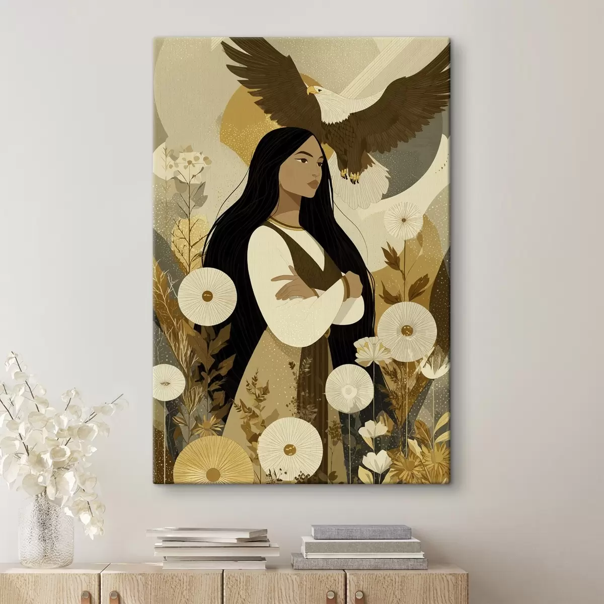 Maalid Naine lendava kotkaga, hõimu stiilis, beežid värvid Nr s44977