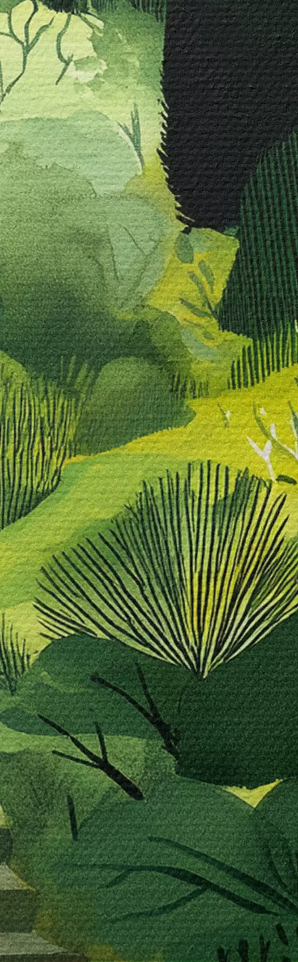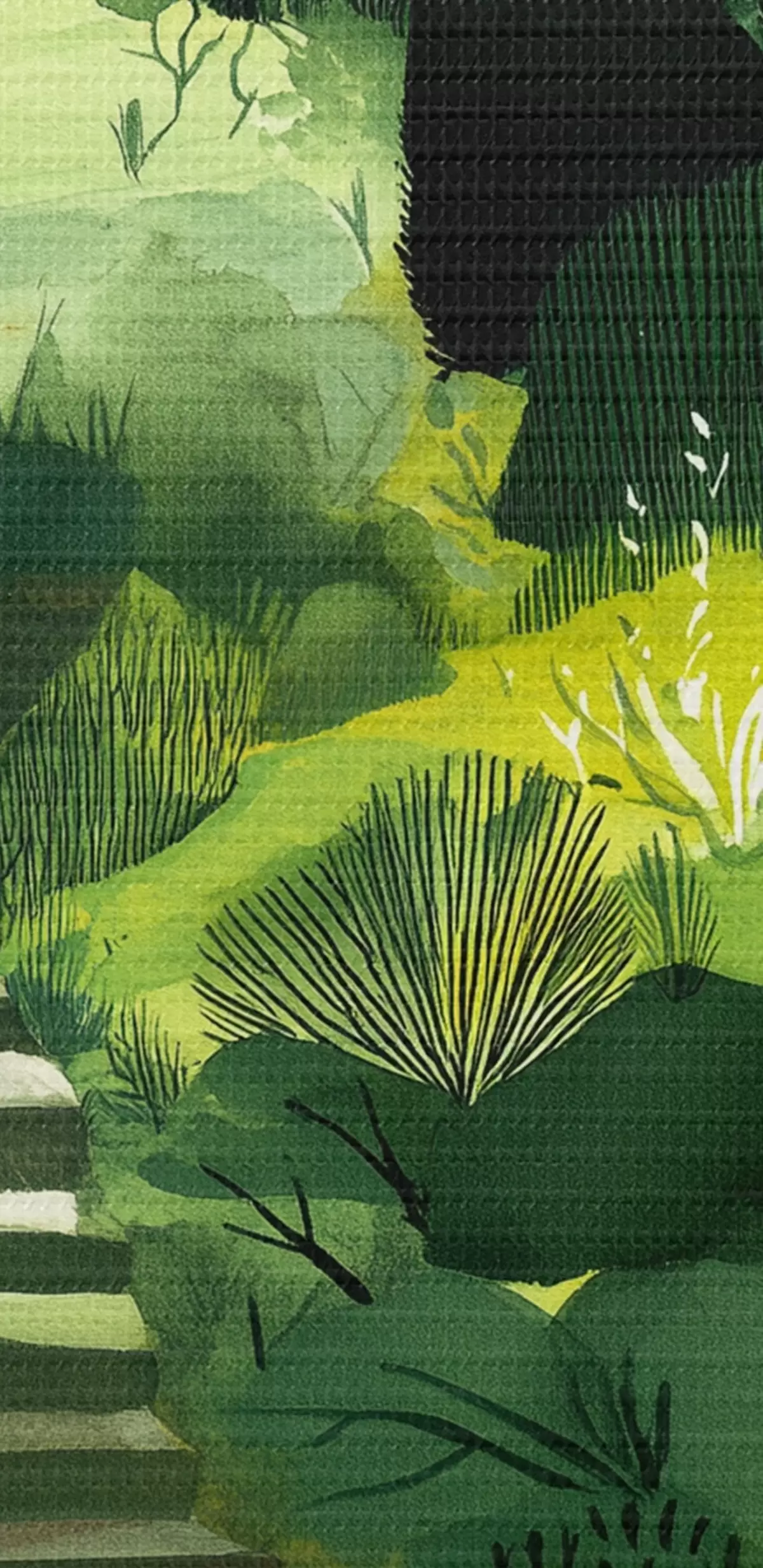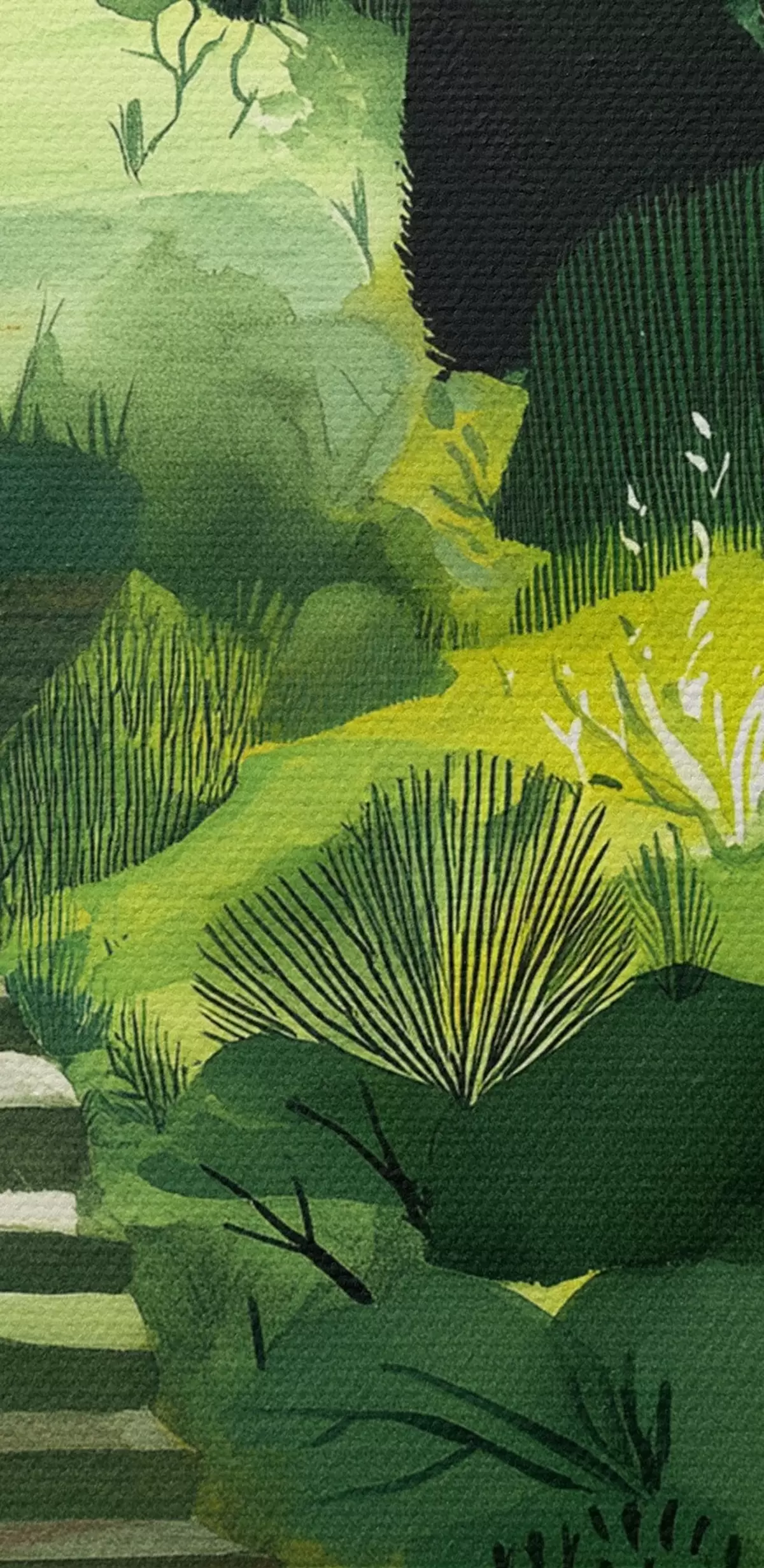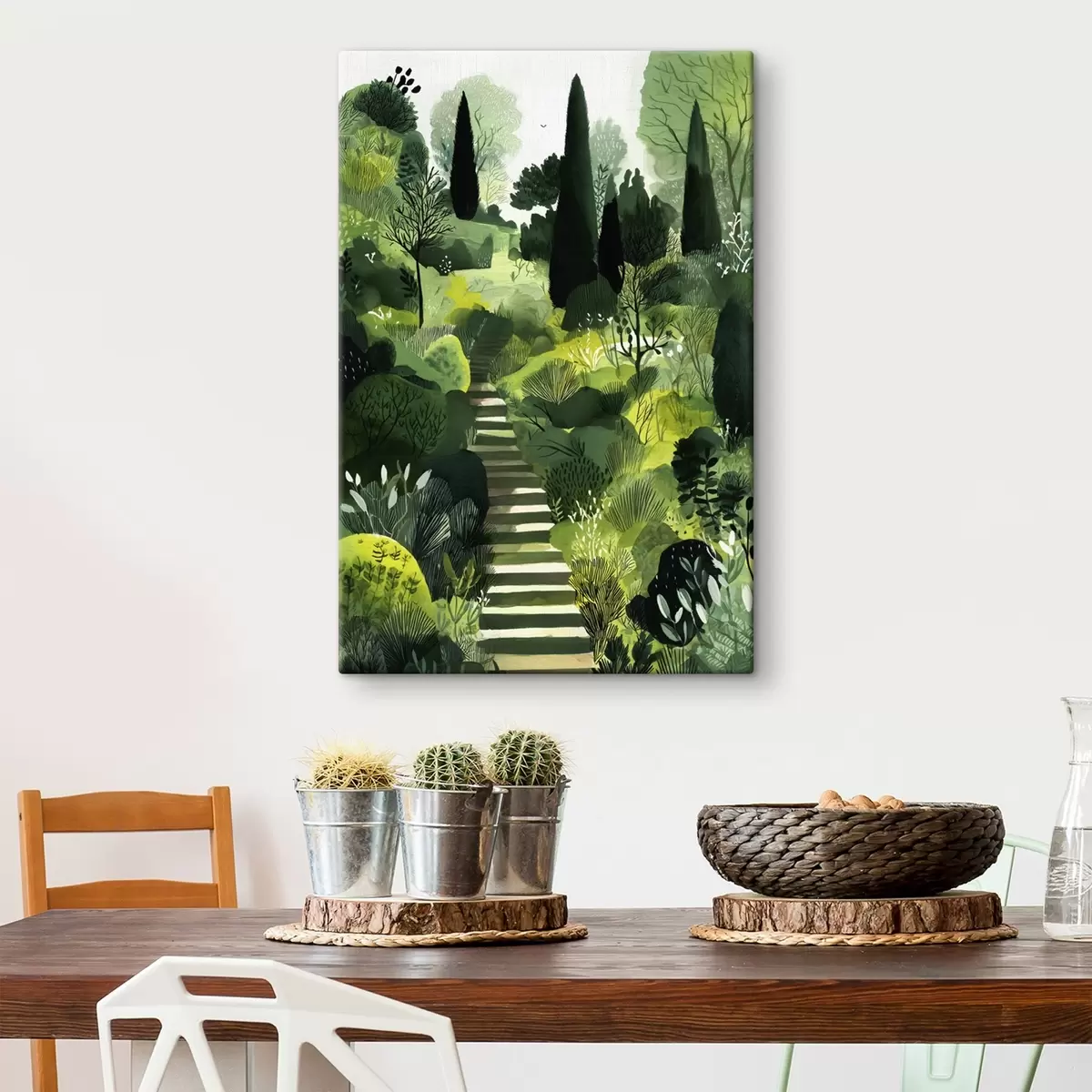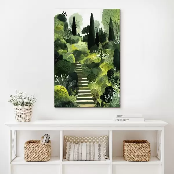Maalid Rohelised künkad puude ja põõsastega, betoonist trepid, lopsakad värvid Nr s44980