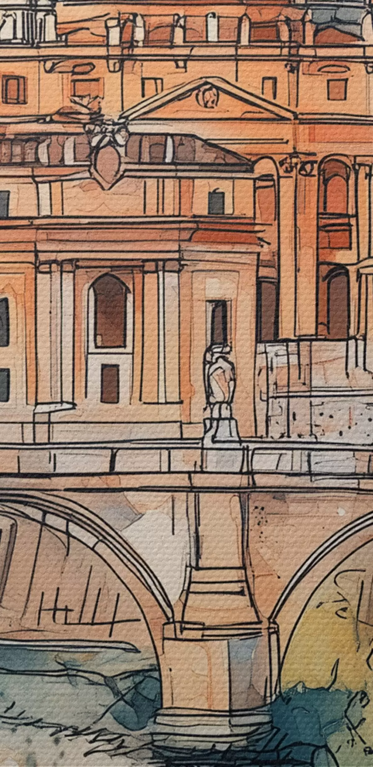 Maalid Akvarell Rooma linn, visandiline joonistus, arhitektuur Nr s44983