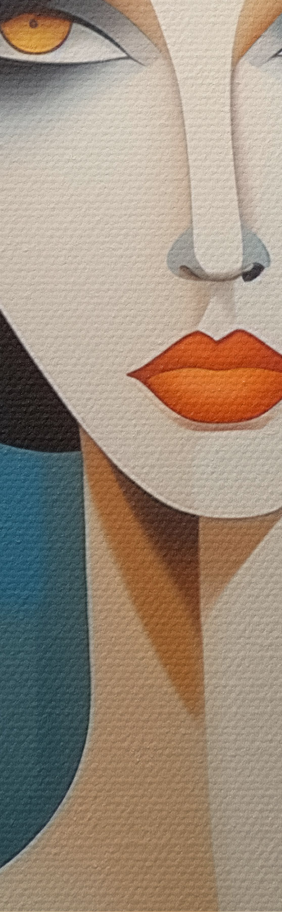 Selle lõuendi peenike niidipunus meenutab professionaalse kunstniku lõuendi pinda.