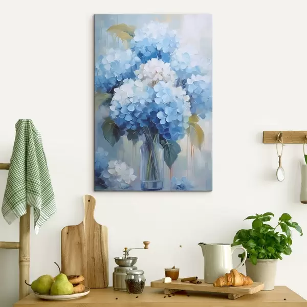 Maalid Sinise hortensiaga kimp klaasvaasis Nr s44998