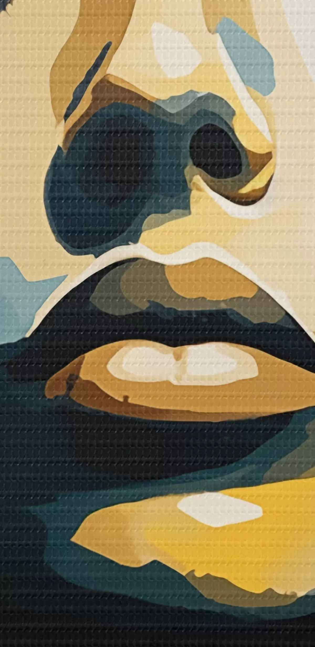 Selle lõuendi peenike niidipunus meenutab professionaalse kunstniku lõuendi pinda.