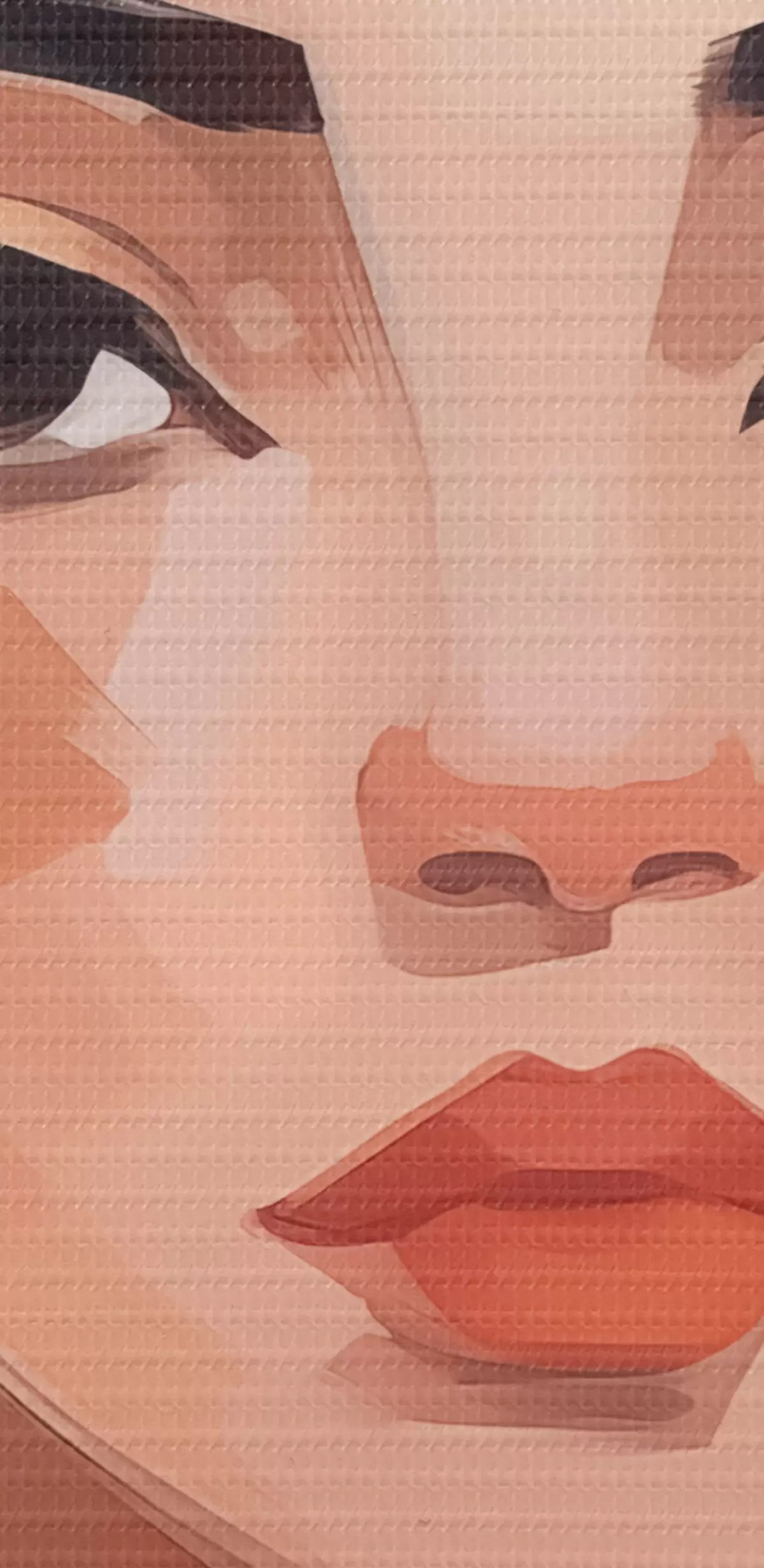 Selle lõuendi peenike niidipunus meenutab professionaalse kunstniku lõuendi pinda.