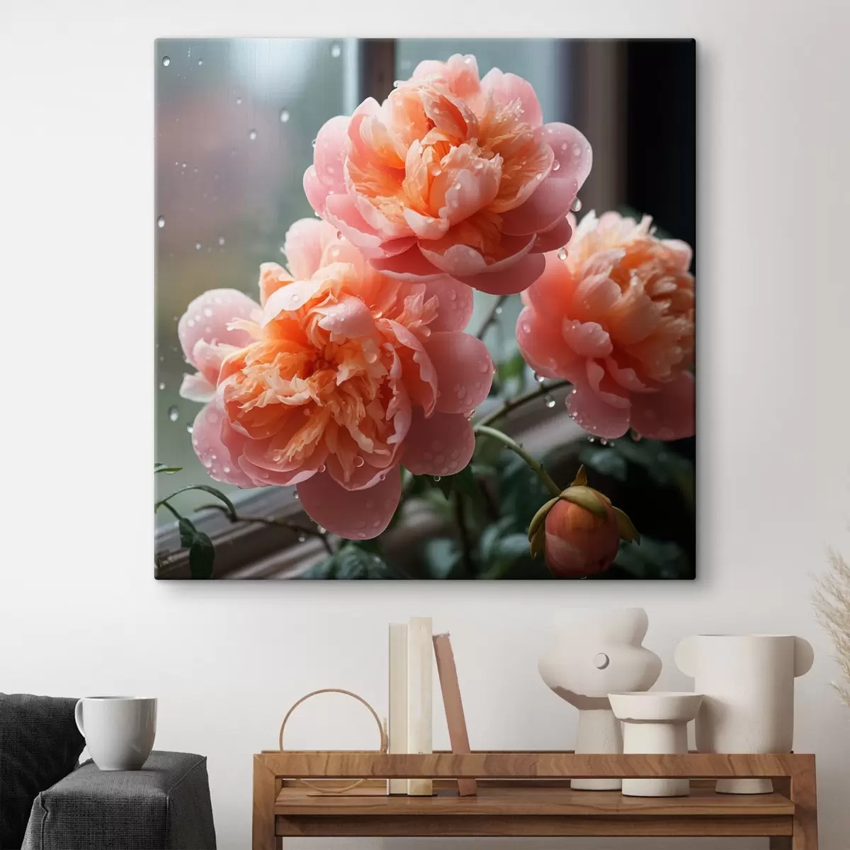 Maalid Kolm pioonid kaste hommikuvalguses Nr s45033