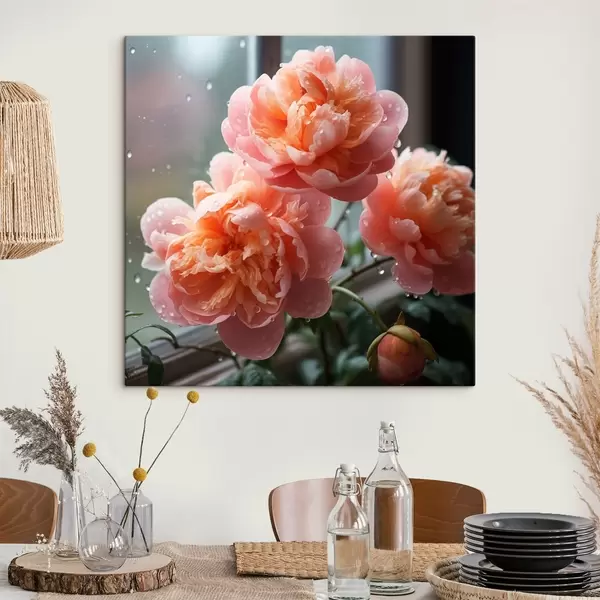 Maalid Kolm pioonid kaste hommikuvalguses Nr s45033
