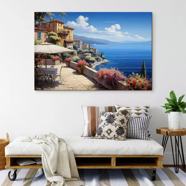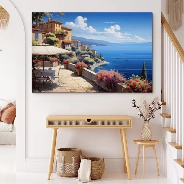 Maalid Vahemere maastik koos õitsva terrassiga kunstilises stiilis Nr s45053