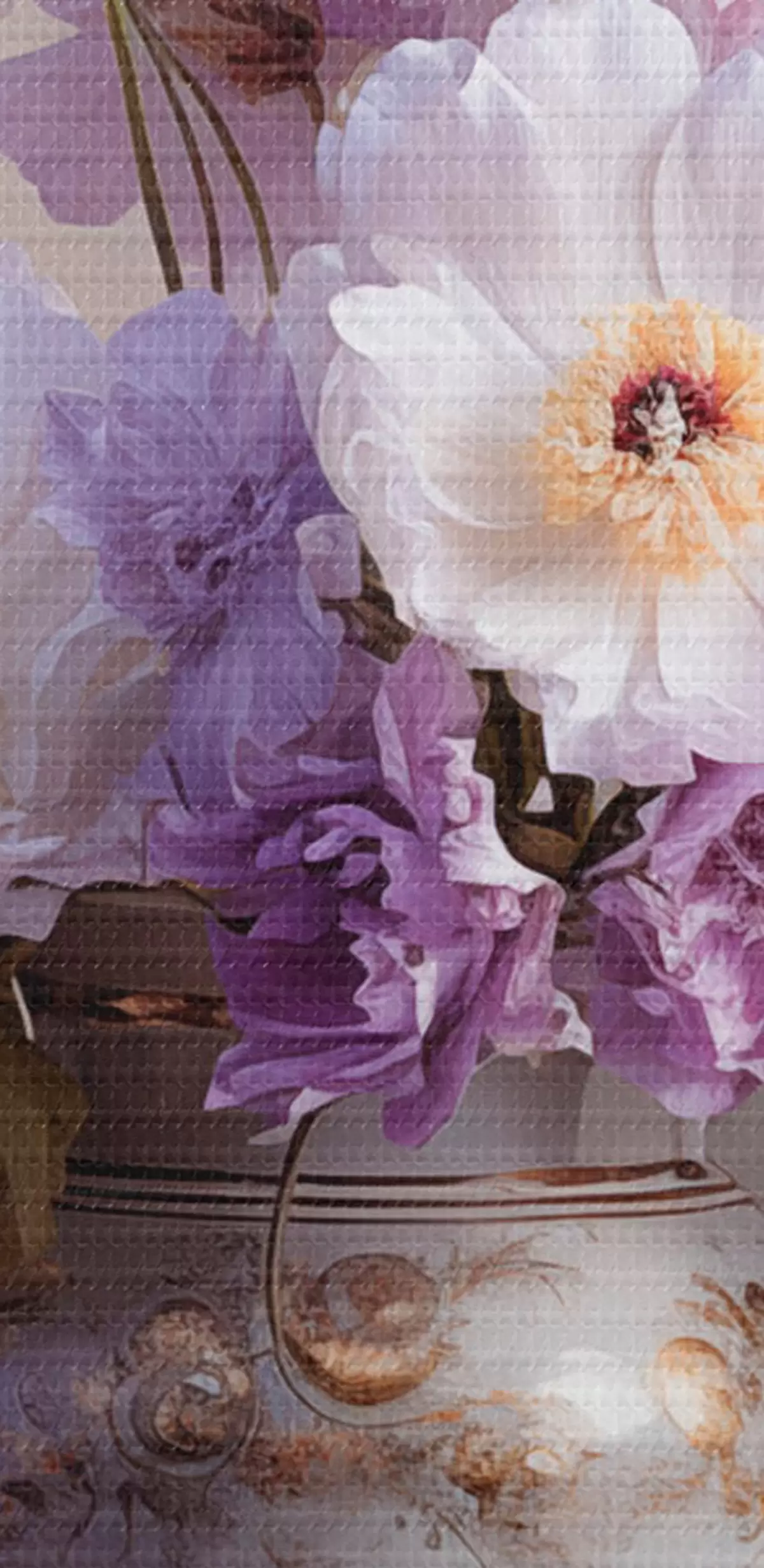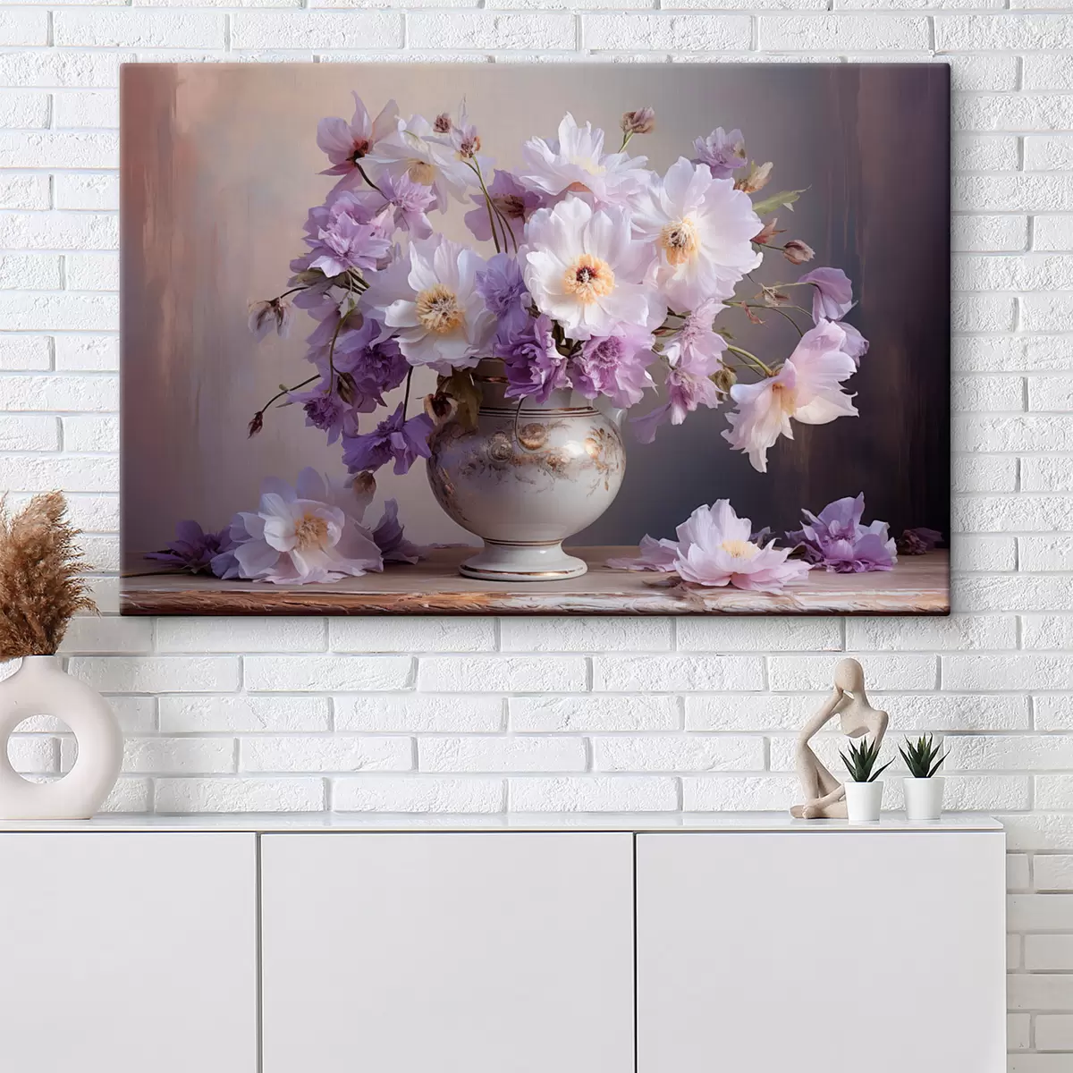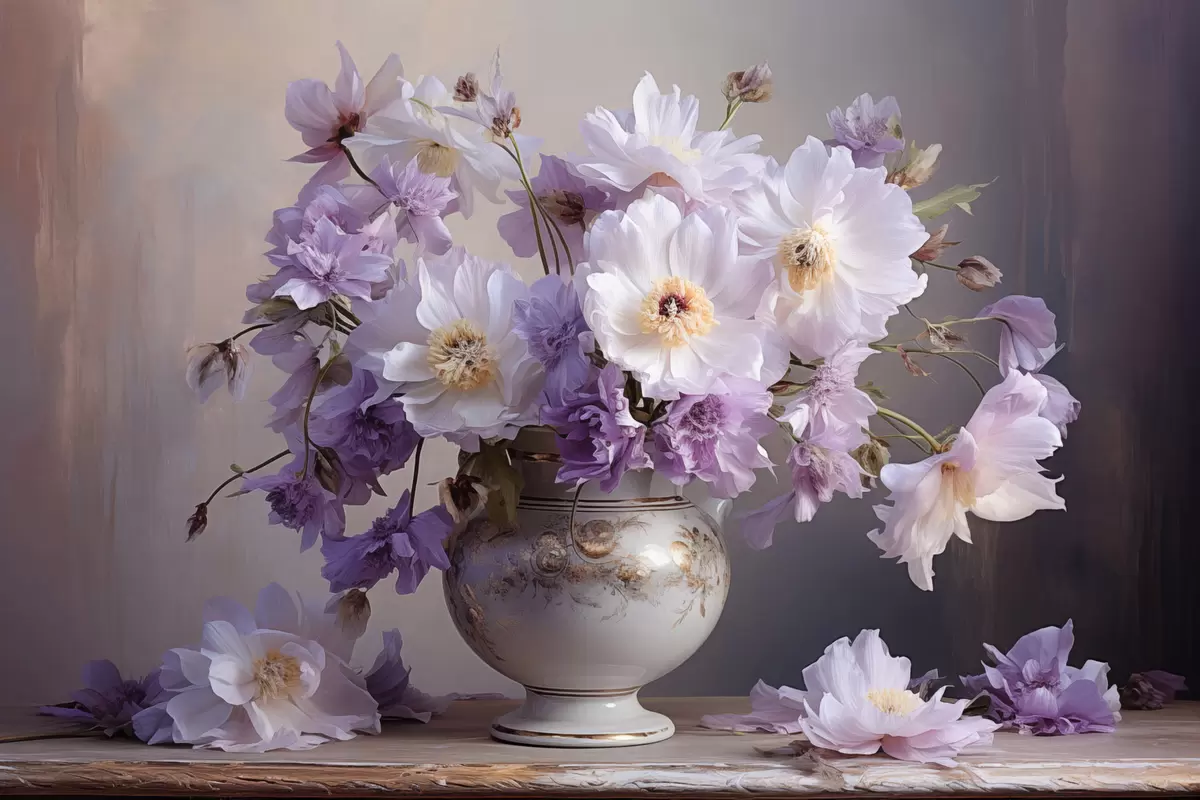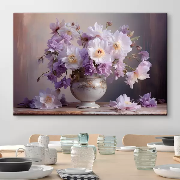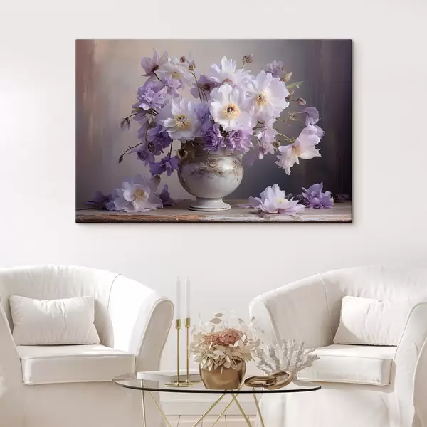 Maalid Lillestatiiv: valged ja lillad lilled kunstilises stiilis Nr s45058