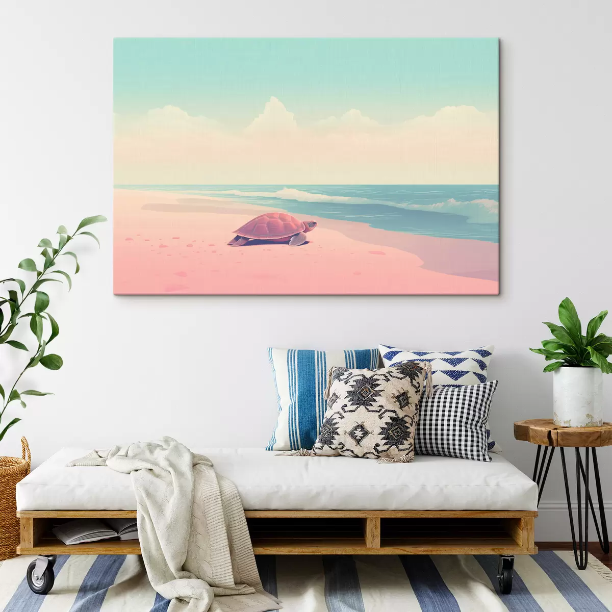 Maalid Merikilpkonn roosa rannas: minimalistlik maastik Nr s45059