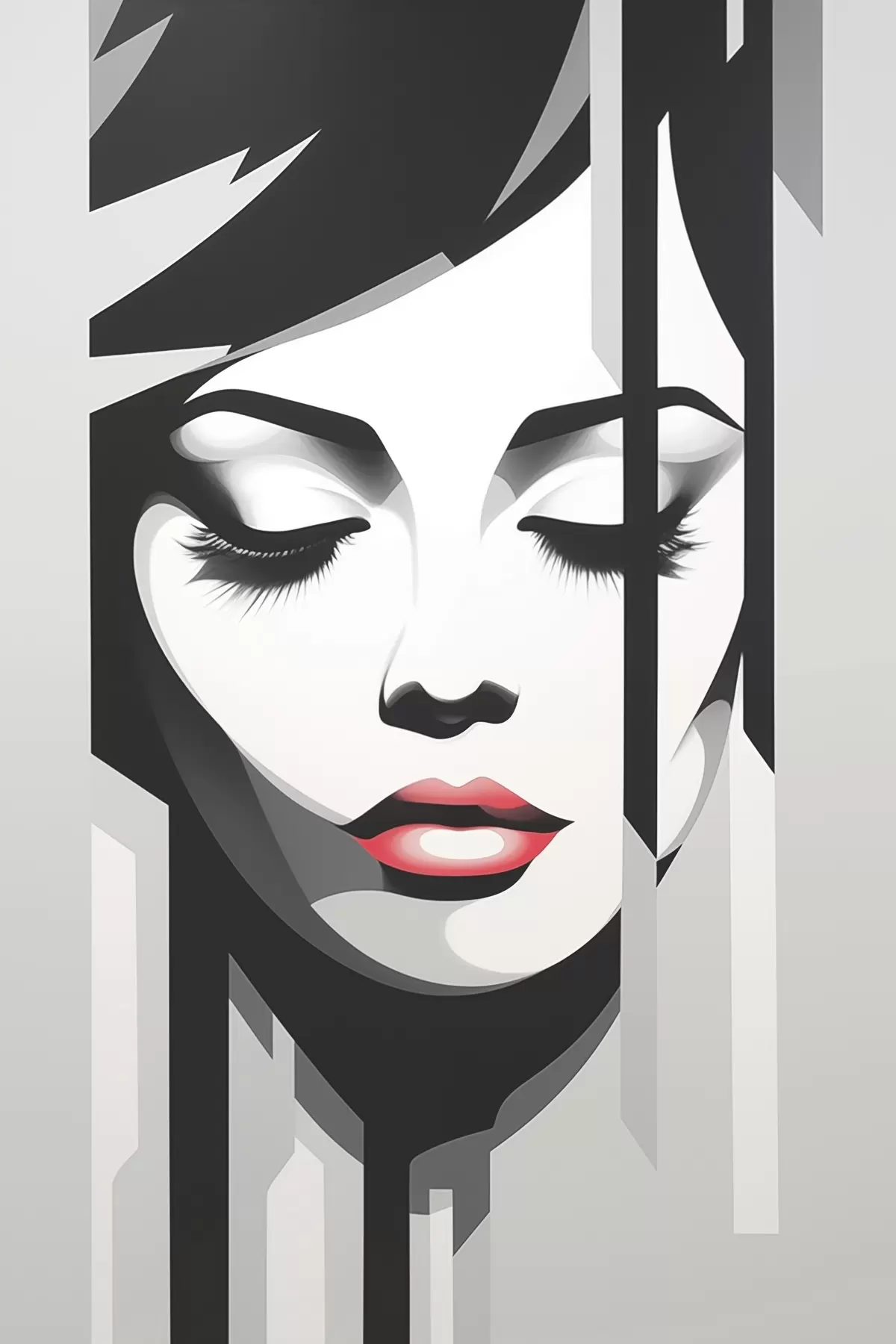 Maalid Must-valge nägu suletud silmadega Nr s45076