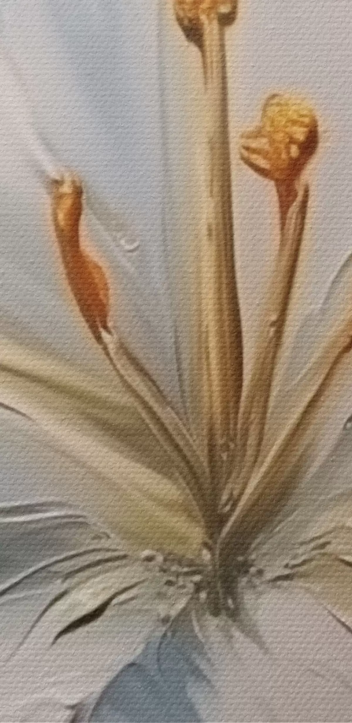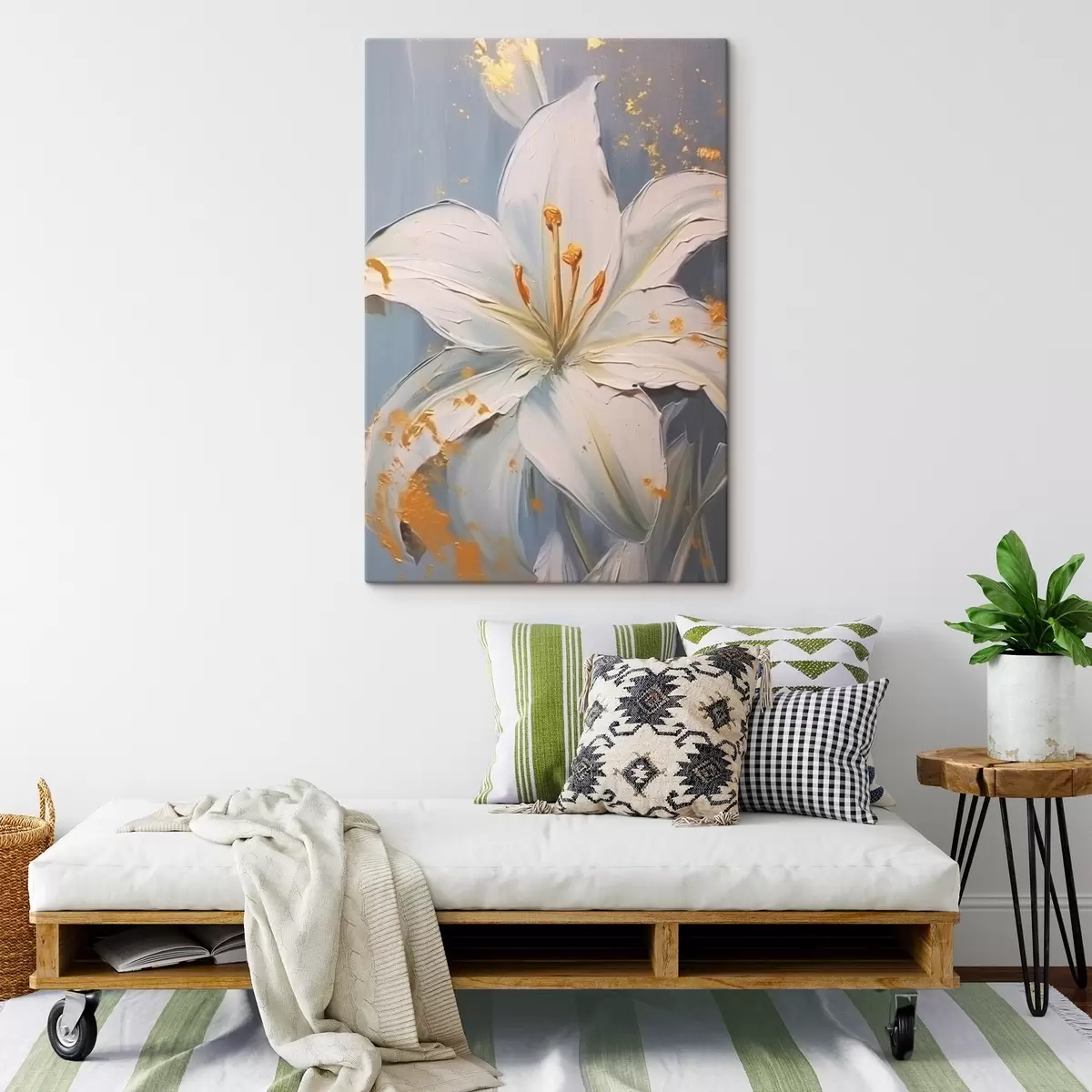 Maalid Valge liilia kollaste aktsentidega sinisel taustal Nr s45078
