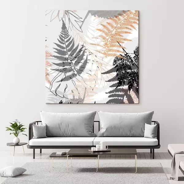 Maalid sõnajalg, abstraktsed lehed, muster, lame disain, kontrast, hallid toonid, botaanika, ülekate Nr s45101
