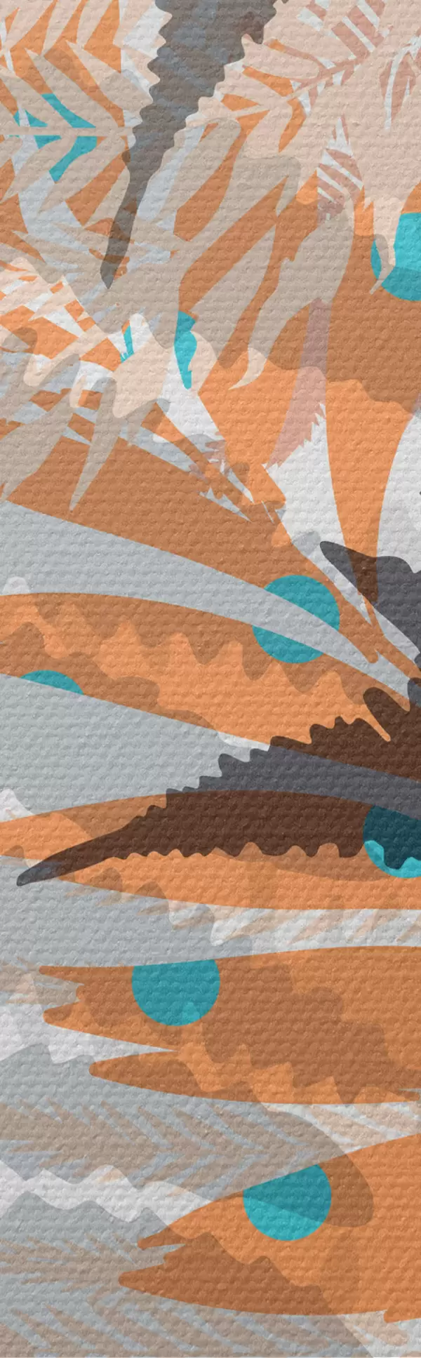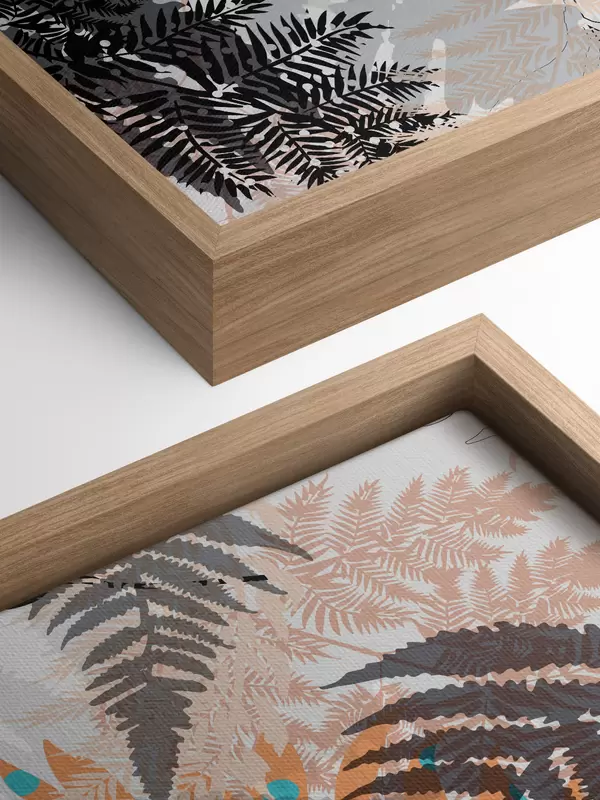 Maalid džunglilehtedega, moodne stiil, joontehnika, mitmekihilised taimed, vaoshoitud värvid, loodus Nr s45102
