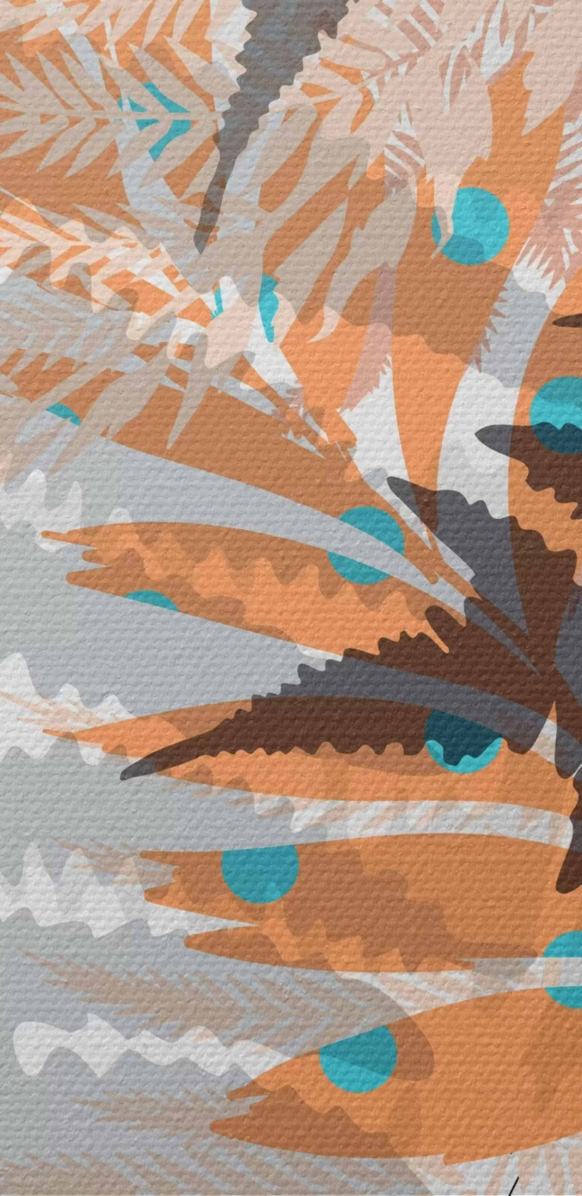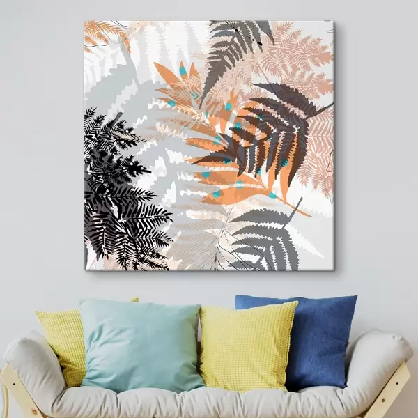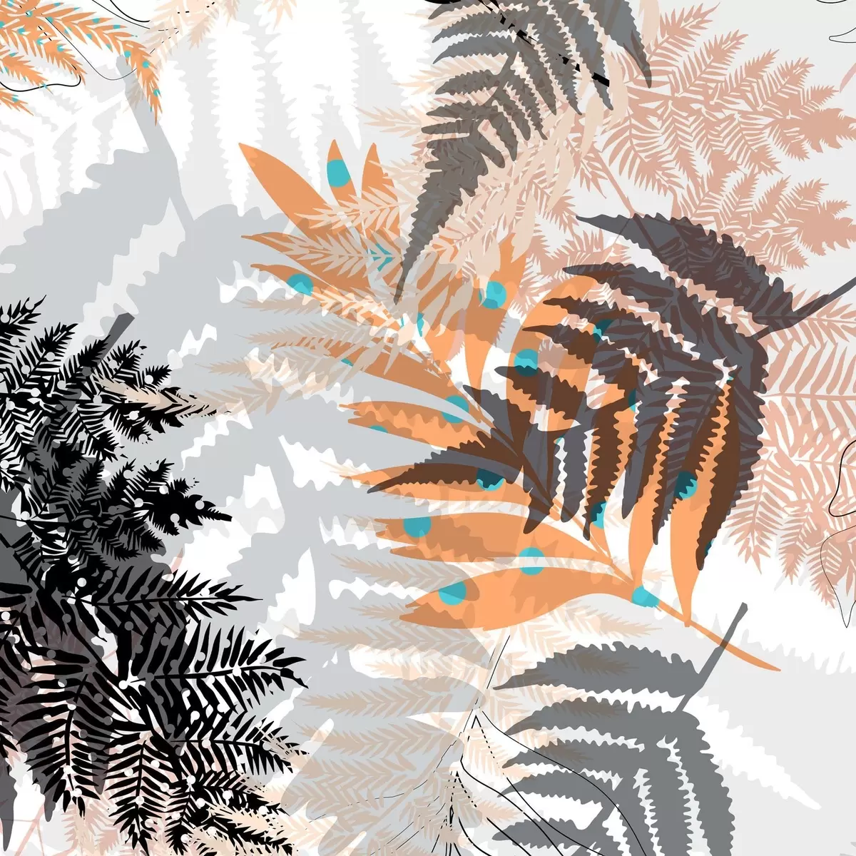 Maalid džunglilehtedega, moodne stiil, joontehnika, mitmekihilised taimed, vaoshoitud värvid, loodus Nr s45102