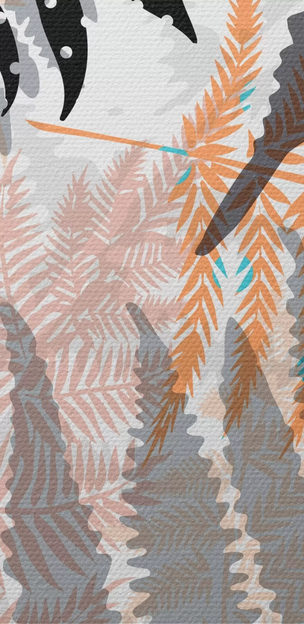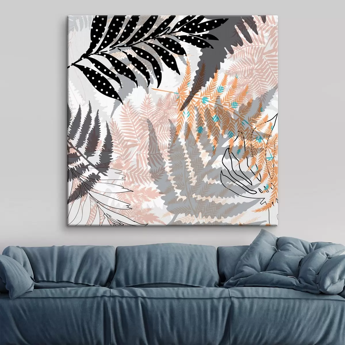 Maalid troopilised lehed, graafika, tekstuur, beež ja must, siluett, kaasaegne, taim Nr s45103