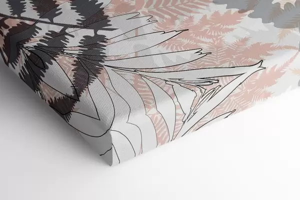 Maalid troopilised lehed, graafika, tekstuur, beež ja must, siluett, kaasaegne, taim Nr s45103