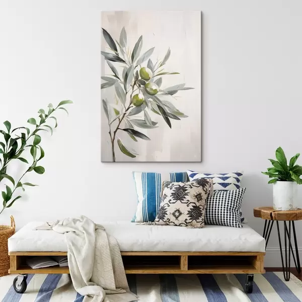 Maalid oliivipuu oks, roheline puu, vaoshoitud toonid, lehed, minimalistlik, looduslik, õlimaal, botaanika Nr s45109
