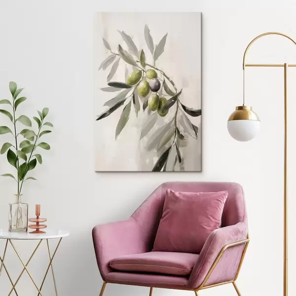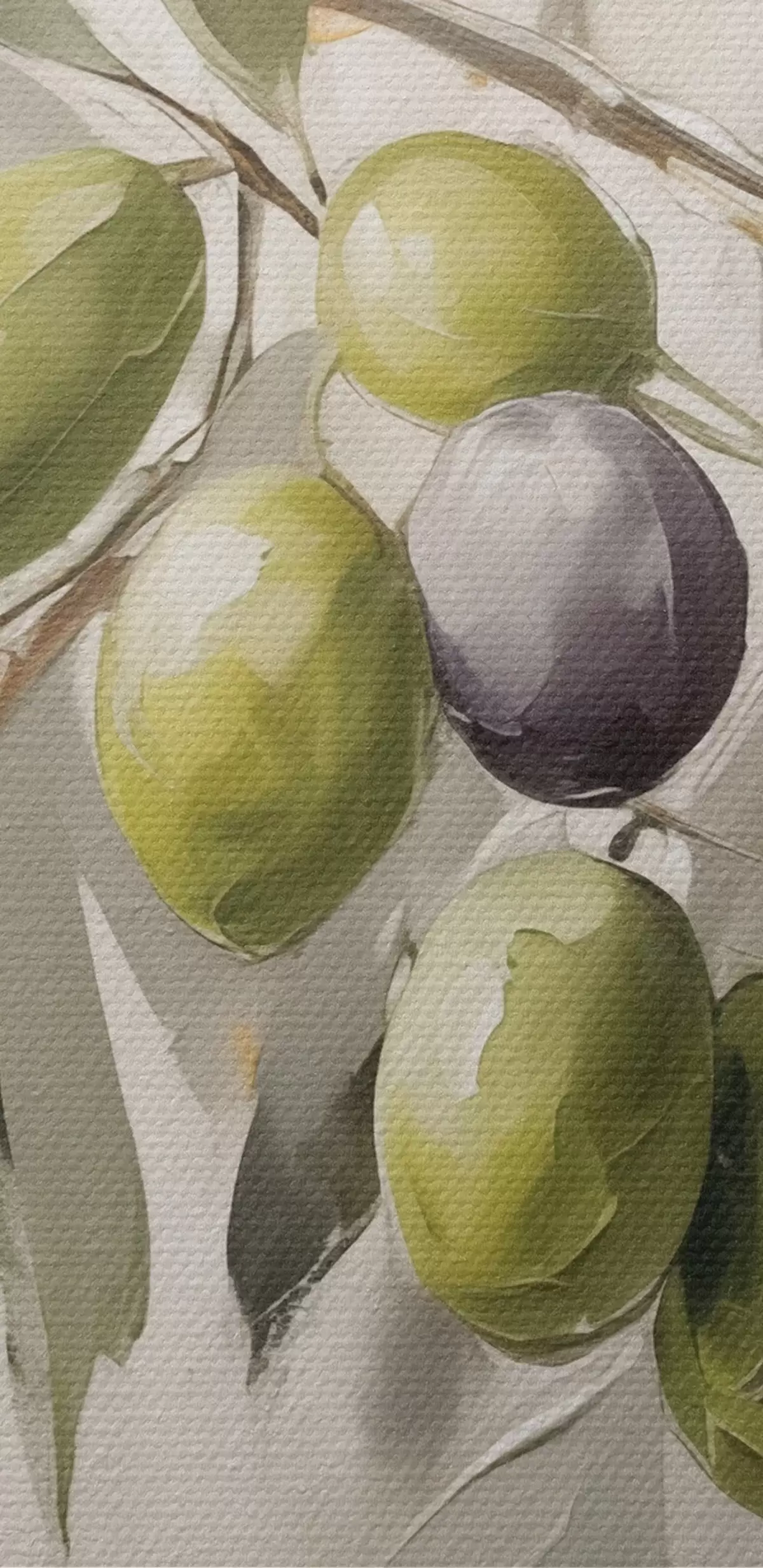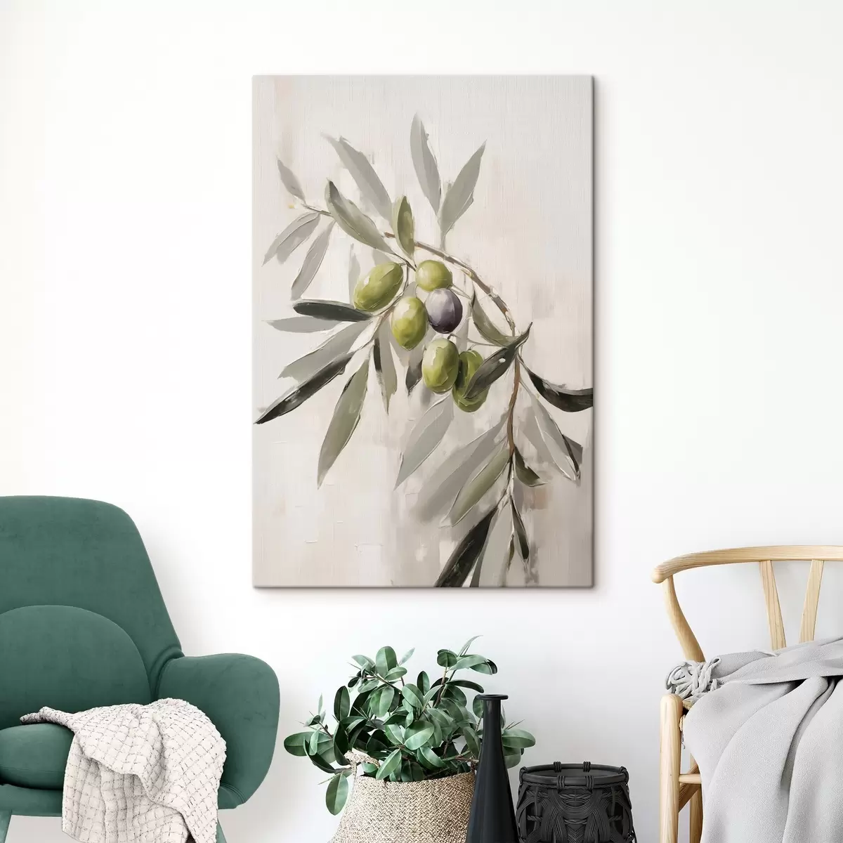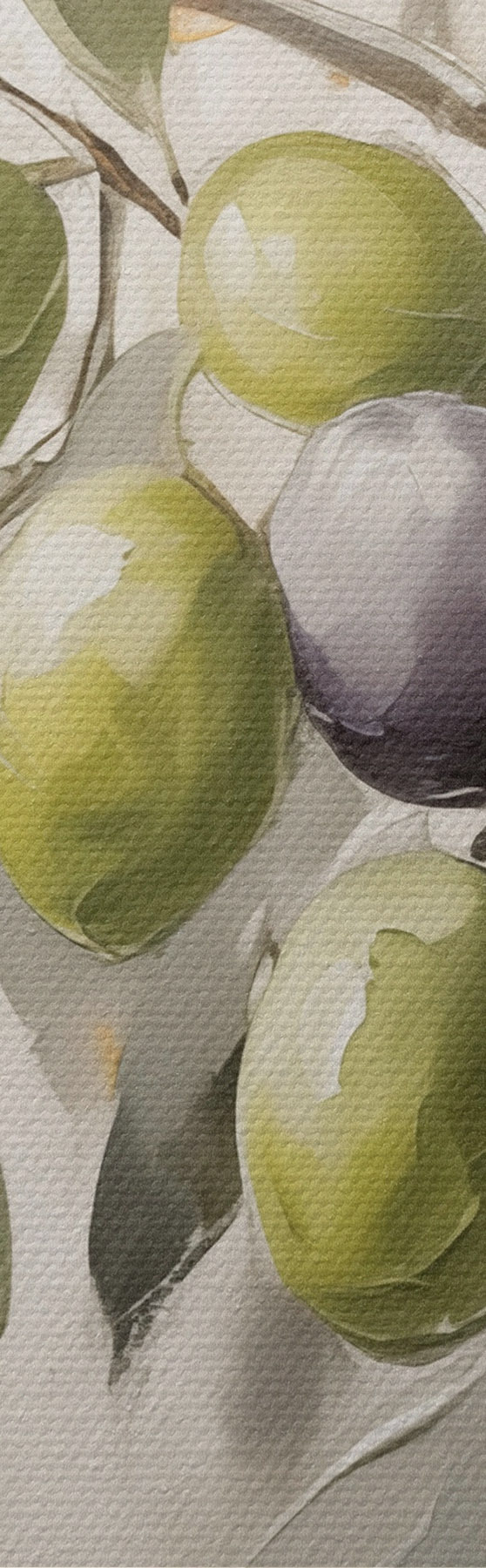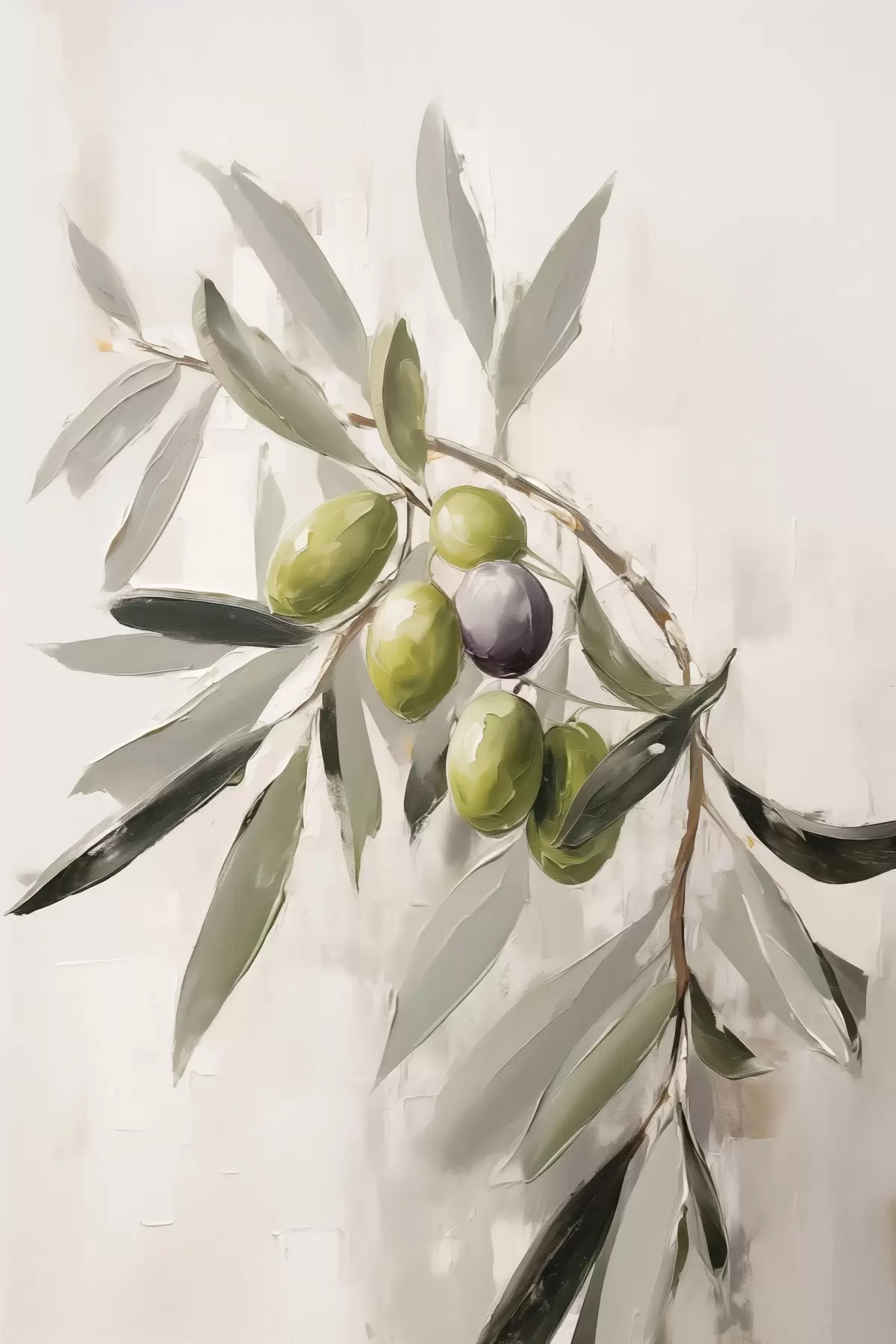 Maalid rohelised oliivid, okste detail, kerge taust, orgaaniline, naturaalne palett, maalähedane, maalähedane Nr s45110