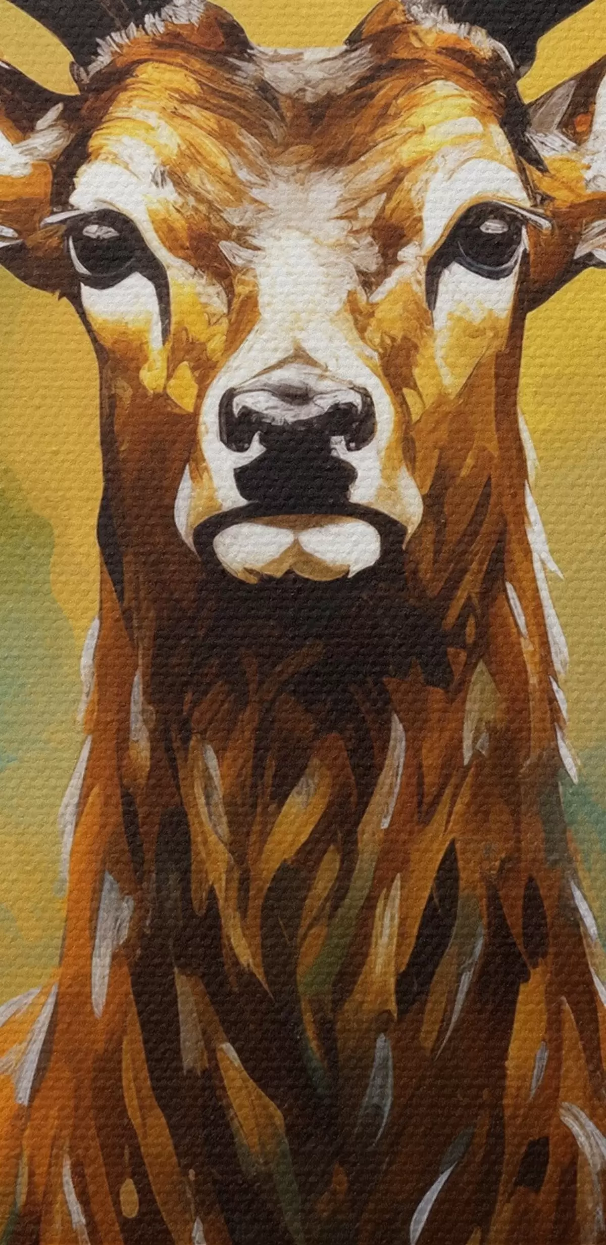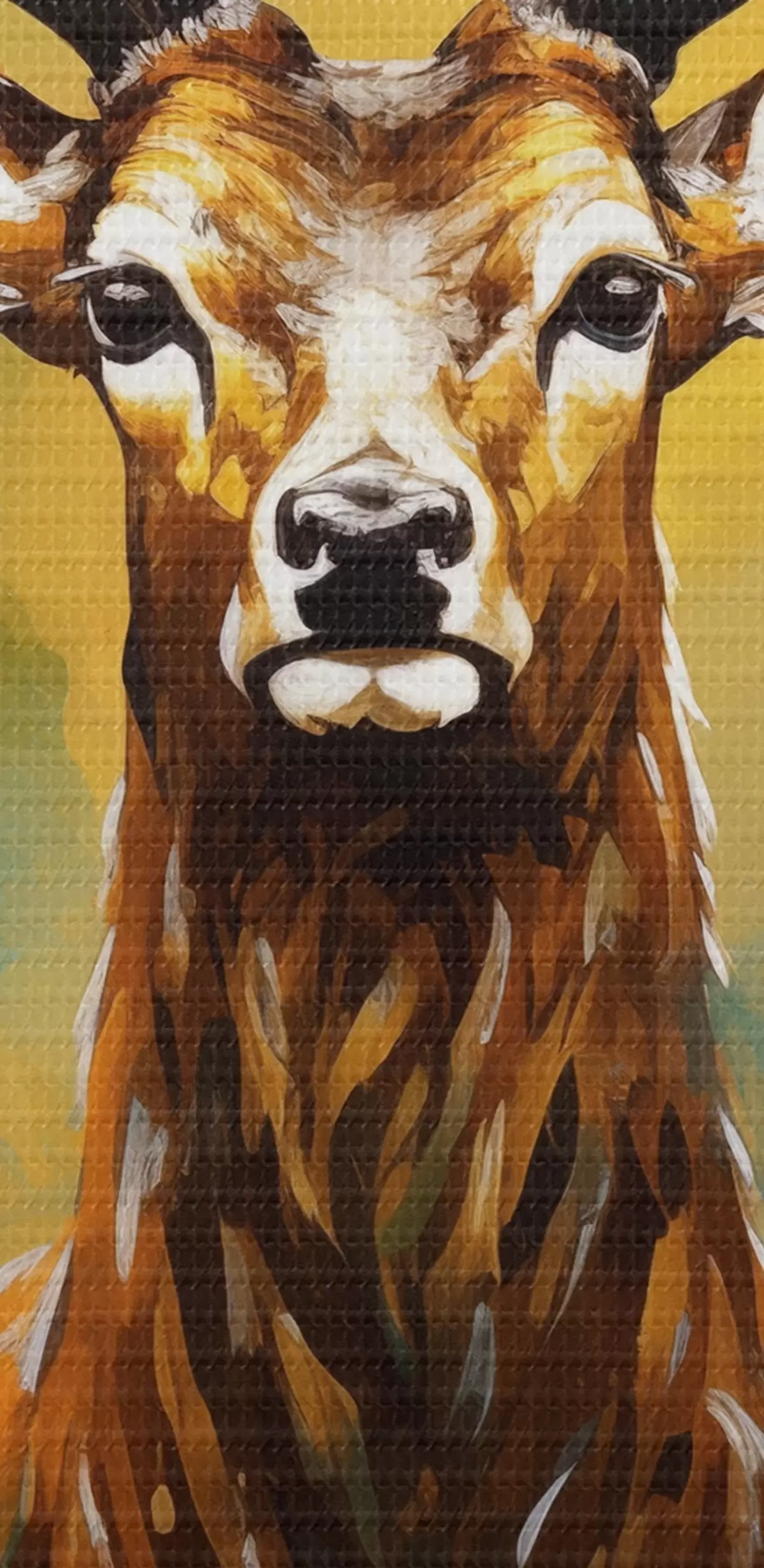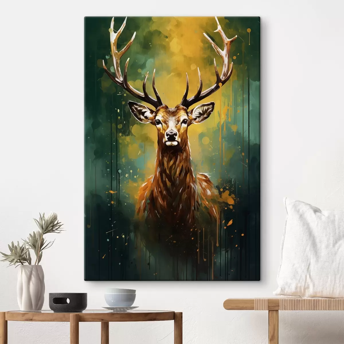 Maalid hirv, sarved, metsaroheline, oranž pritsmed, loomaportree, värvitilgad, julge, metsloomad, metsloomad Nr s45111