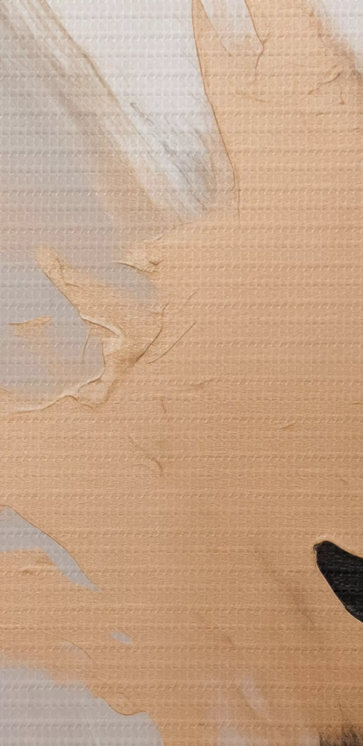 Selle lõuendi peenike niidipunus meenutab professionaalse kunstniku lõuendi pinda.