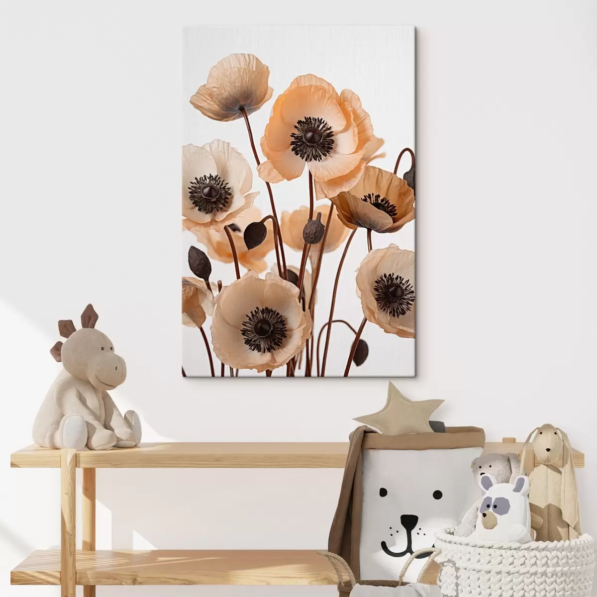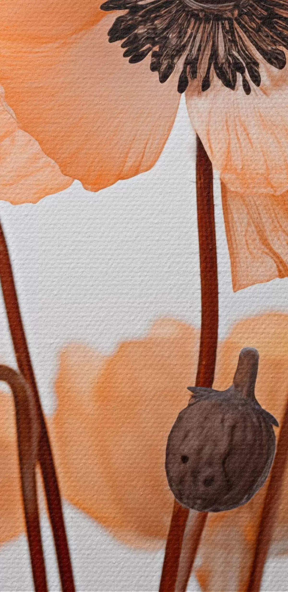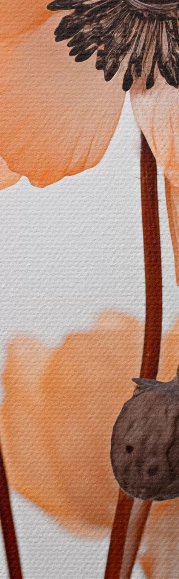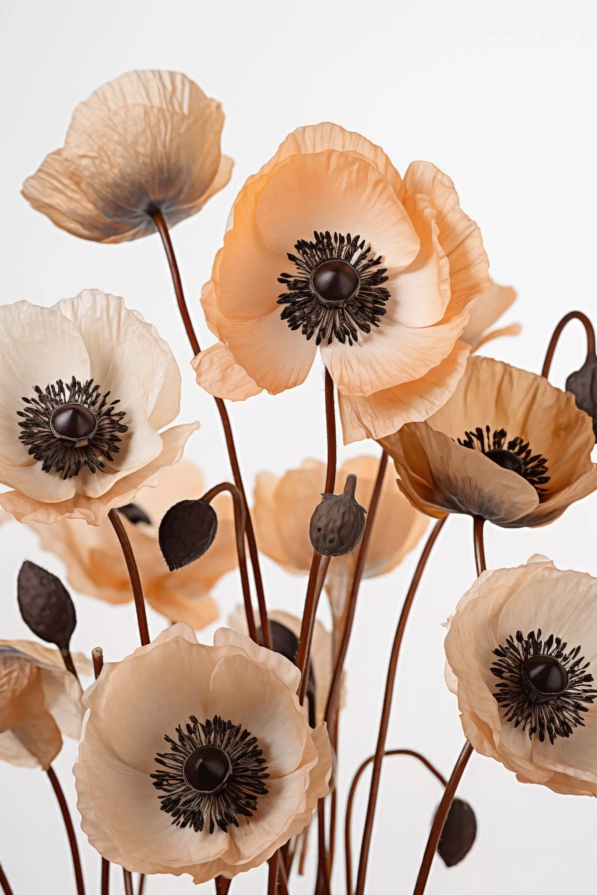 Maalid Oranžid moonid, kuivatatud lilled heledal taustal, pehme valgustus, õrnad kroonlehed, lilleseade Nr s45168