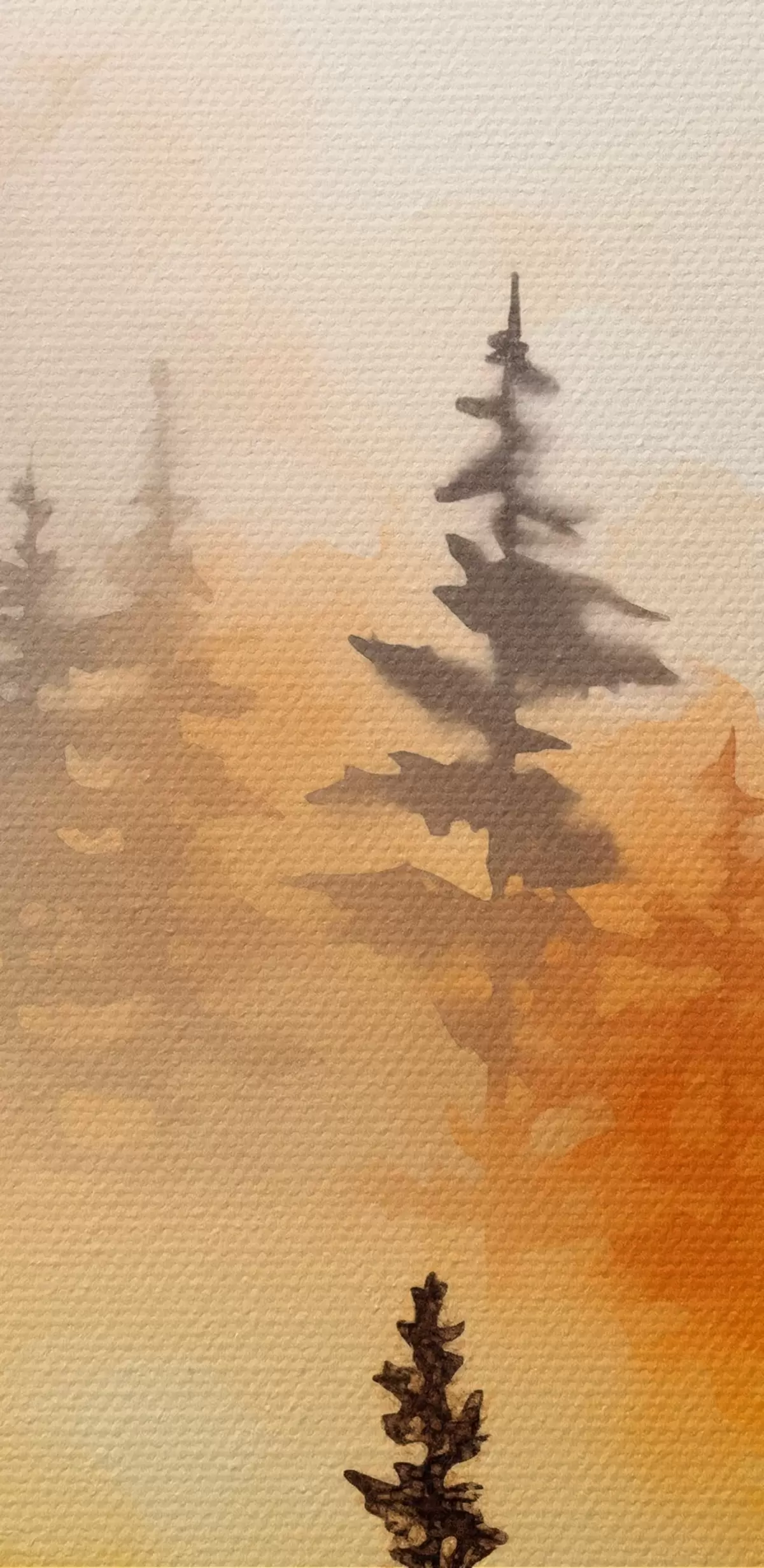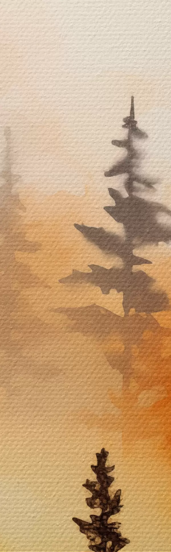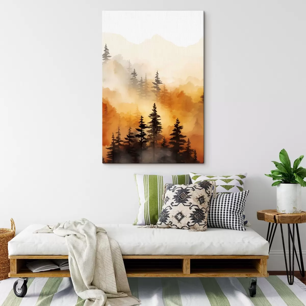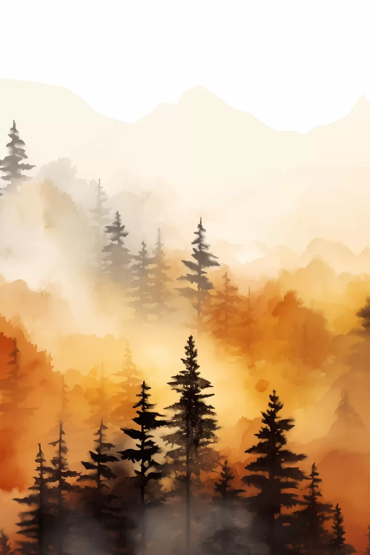 Maalid Maastiku akvarellmaal imitatsioon metsa kõrge männi ja mägedega taustal Nr s45170